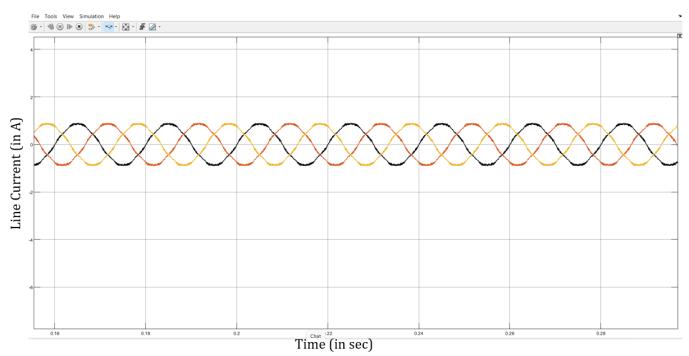 AsshowninFigure8,itisobservedthatnoiseinlinecurrent hasbeeneliminatedbyusingLCLfilter.Withtheresultwe are able to achieve THD less than 5% as per industrial standardIEEE-519
