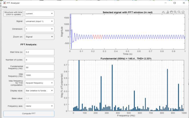 AsshowninFigure9,itisobservedthatfundamentalTHDis 2.33% calculated by using FFT analysis using MATLAB software.