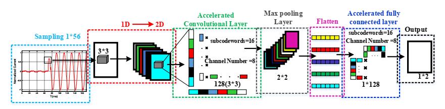 The computational cost, dependence on the model, and preset threshold of existing approaches in differential protectiontodifferentiateinternaldefectsfromtheinrush currentinpowertransformersreducethedependabilityand generality of this critical operation. With the help of the enormousquantityofdatacapturedbycontemporarydata gathering systems, the suggested solution represents a significant advancement in the practical intelligent automationofpowertransformerprotection.Byemploying the product quantization approach to accelerate the convolutionandFCNlayers,wecreatedanacceleratedCNN. TheacceleratedCNNrunsfourtimesquickerthanthebasic CNN,improvingaccuracybyaround1%whilemaintaining accuracy. Furthermore, once the CNN structure is established,thesuggestedmachinelearning-basedsecurity mechanismmaybeusedwithmanysystemsindependentof the system characteristics. Both simulated and actual scenarios of applying the suggested strategy to a system wereused.Tenadditionalapproaches,includingeightdatadrivenandtwosignalprocessingmethods,werecompared totheoutcomesoftheacceleratedCNNmethod.