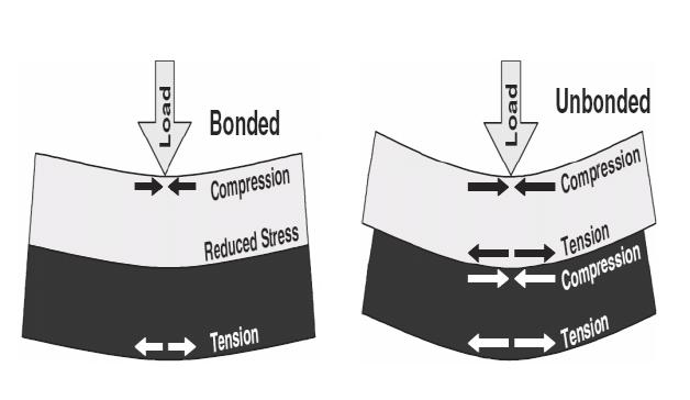 ThemaximumstressinthePCClayerwasidentifiedatthe bottom of the layer Both fully bonded and unbonded conditions were considered in the stress prediction equations Interpolation was needed to get the corresponding stress for the actual partial bonding at the discretionoftheengineer.