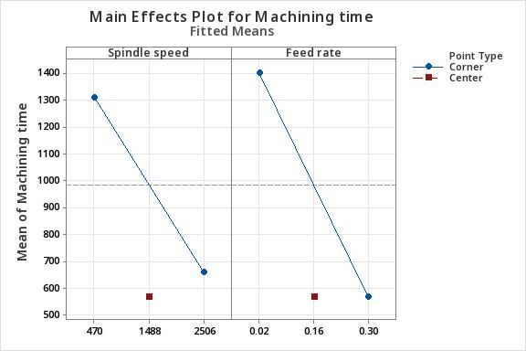 First, the FFD experiment result shows that the main interaction plot (Fig. 2) shows that the center point does not lie on the line joining the start and end points. It indicatesthattherelationshipbetweentheinputvariables (spindle speed and feed rate) and the response variable (machining time) is not linear. The study concluded that