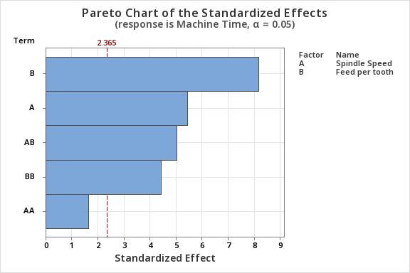 TheParetochart(Fig.3)showsthatfeedpertooth,spindle speed, interaction of feed per tooth, spindle speed, and squareoffeedpertootharesignificantatα=0.05.