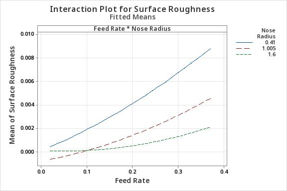 Fig-9:Interactionplotsoffeedrate,noseradiusand surfaceroughness.
