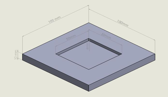 A specimen of GCI material with dimensions of 100 mm x 100 mm x 10 mm and a contour of 50 mm x 50 mm x 4 mm,asshowninFig.1,wasusedformillingmachining.