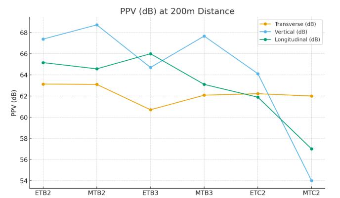 Fig -2. PPV(dB)at200mdistanceforTransverse, Vertical,andLongitudinaldirections.