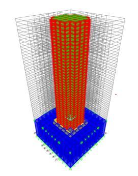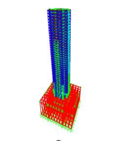 TheanalysiswascarriedoutforaG+39storeybuildingwith andwithoutoutriggers,locatedinSeismicZonesIVandV, knownfortheirhighseismic activity.Thestructureswere supportedonsoftsoilwithabearingcapacityof150kN/m² andadepthof30meters.A5-meter-deepmatfoundation was used to transfer loads from the superstructure to the underlyingsoil.Thebaseofthesoilwasassumedtobefixed, andsurfacespringswereincorporatedatthebaseofthemat foundation to simulate soil-structure interaction. These springs represented the soil's stiffness and damping characteristics,enablinga morepreciseassessmentofthe building'sseismicresponse.