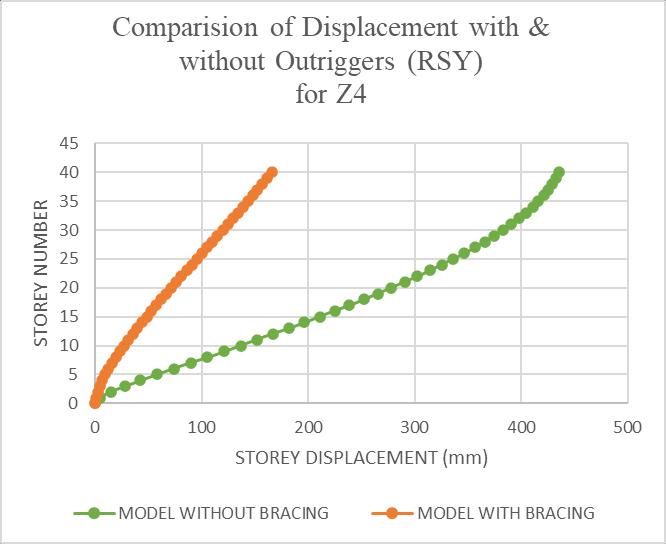 Chart -3:Comparisonofdisplacementwith&without Outriggers(RSY)forZ4