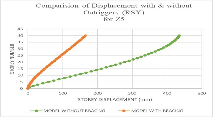 Chart -2:Comparisonofdisplacementwith&without Outriggers(RSY)forZ5
