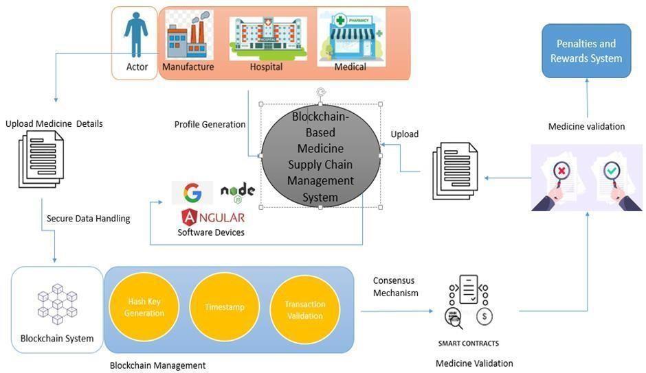 and operational efficiency within the complex network of the healthcare supply chain. In order to guarantee the integrity and provenance of data for all supply chain participants including raw material suppliers, manufacturers, distributors, pharmacies, hospitals, and patients the system first seeks to create an unchangeable, decentralized storage framework. By leveragingsmartcontracts,