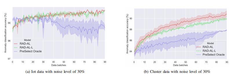 Figure-3: Comparison of RAD Active Learning Limited (RAD-AL-L) and Pre-Select Oracle, showing the power of selection.