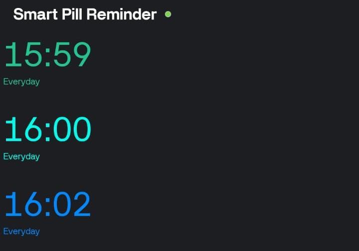 The Smart Pill Reminder is a microcontroller-based embedded system designed to automate medication reminders using IoT features. Its main goal is to provide scheduledpillalertswithoutneedinghumanintervention, which helps users stick to their prescribed medication routines. The system centers around the ESP8266MOD microcontroller, which includes Wi-Fi for smooth connectiontotheBlynkIoT platform[1][2].Userscanset several daily alarm times through the Blynk mobile app with Time Input widgets, allowing for flexibility and remotescheduling[10].