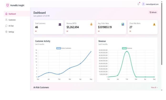 such as churn probability, user sentiment, and chatbot activity logs. The dashboard is designed to be userfriendly and interactive, with filtering and drill-down capabilities.