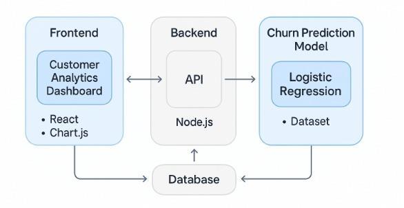 The churn prediction system is built using a modular architecture with Flask for the backend, React for the frontend, and MongoDB Atlas as the cloud database. The Flask API handles data preprocessing and predictions using [5][7]the Logistic Regression model, while React provides a responsive user interface for data input and resultdisplay.ThesystemiscontainerizedwithDockerfor smooth deployment across cloud platforms like AWS or GCP, enabling scalability and portability. MongoDB Atlas ensures high availability and automatic scaling to handle largevolumesofdata.Thebackendisstateless,supporting horizontal scaling and potential integration with task queues for handling high traffic. This setup ensures the system remains efficient, scalable, and ready forfuturegrowth.