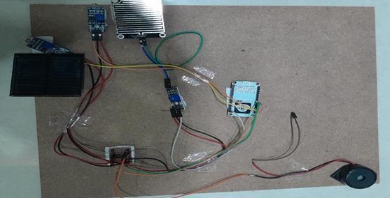 Abstract- Accurate forecasting of solar energy generationiscrucialforthesuccessoflarge-scalerenewable energy facilities, as it depends on evolving weather conditions. This study presents a hybrid model that leverages both machine learning and statistical techniques to predict solar power output. By integrating climate principles with ML algorithms, the proposed approach enhances forecasting accuracy. Additionally, the system incorporates NodeMCU for IoT-based communication, along with components such as an LDR (Light Dependent Resistor), rain sensor, alarm controller, and solar panel for energy generation. This research focuses on implementing MLmodelsusingrealweatherdatatooptimizetheefficiency andreliabilityofsolarenergyutilization.