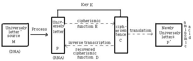 Next, P is thespace of the university cipher source. Every memberthatincludedofthisspacetranscribedintheDNA chain, therefore, this is Genetic cipher, code that included inmendedRNAchain,namely,thisisauniversallyciphers.