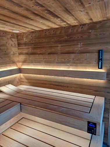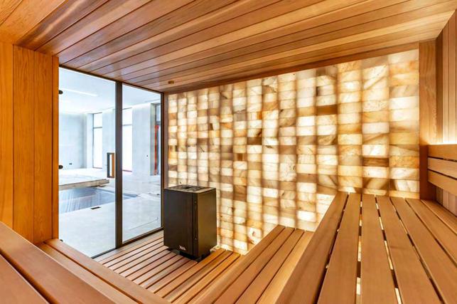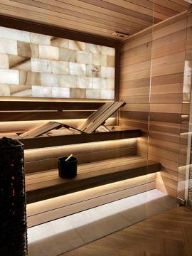 Custom accent walls add depth, texture, and character to the sauna interior. Using stone, tile, wood, or natural materials, these features create a refined focal point—often enhanced by integrated lighting to shape mood and highlight materiality.