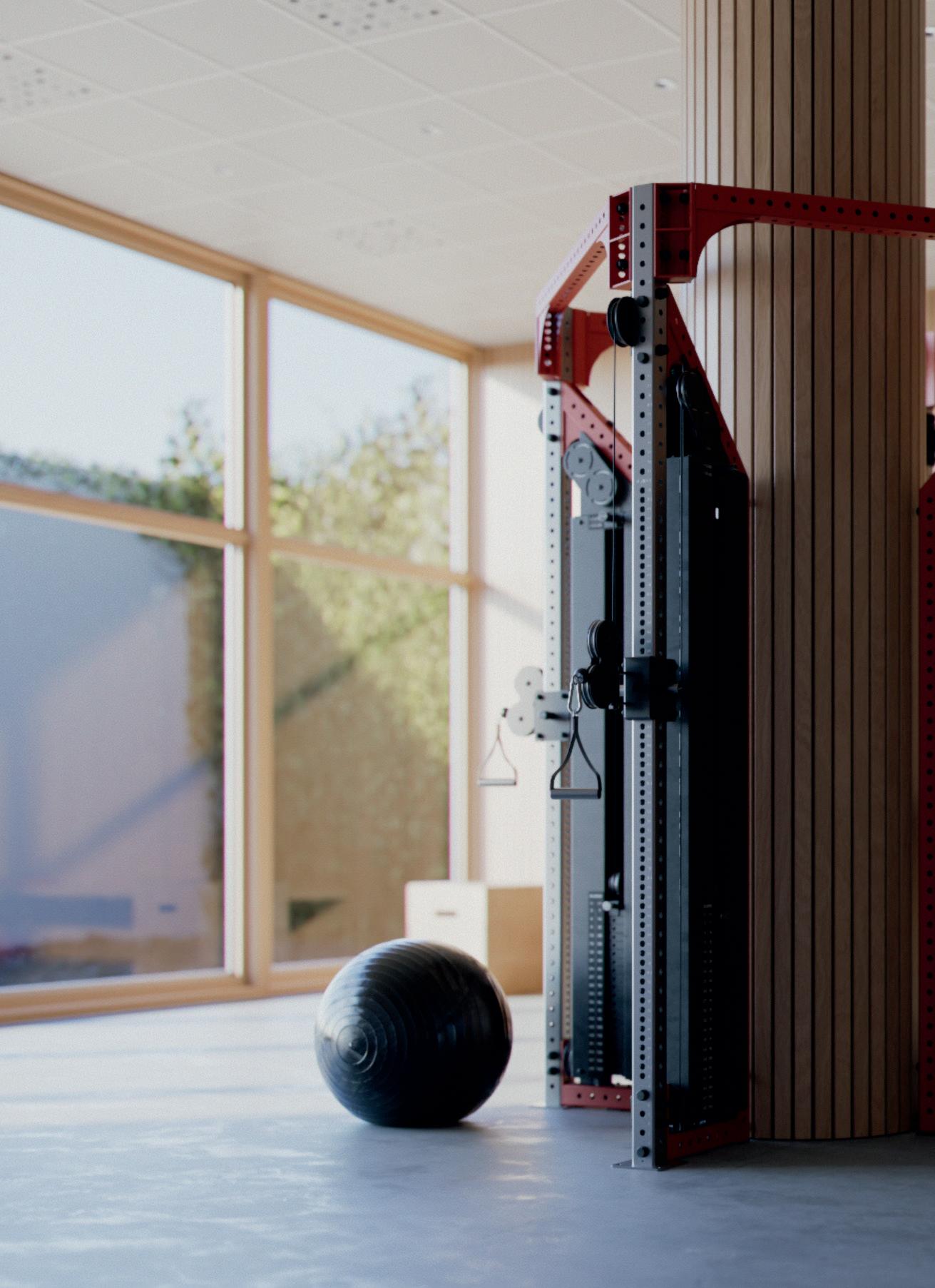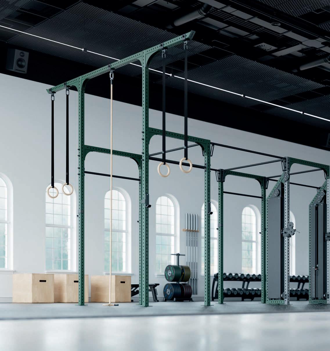Flexible modularity enables custom configurations that maximize space and adapt to individual, group, or sportspecific setups. Integrated storage and varied training attachments keep equipment organized and within reach, ensuring an efficient, clutter-free training flow.