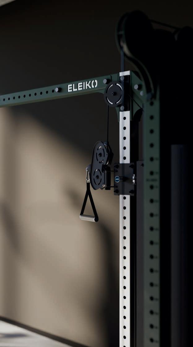 The Prestera Cable Attachment enhances versatility by enabling numerous cable-based exercises — all within the uprights of the compact Prestera rack or rig footprint.