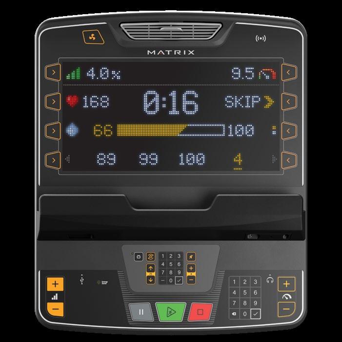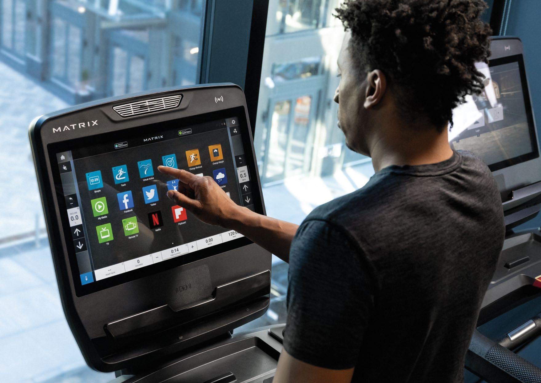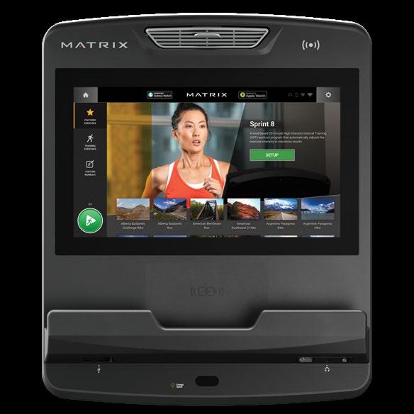 Connect your members to stunning entertainment, social media favorites, brand-building communication and much more with the industry’s best consoles. WiFi-enabled Touch Consoles feature an app-based interface that mimics familiar smartphone and tablet operating systems, making it easy for members to connect to the content that keeps them moving. They provide a smooth, hasslefree exercise experience thanks to complete workout feedback, Bluetooth and ANT+ connectivity, single-point user login, Wireless RFID login, built-in fan, power save mode with auto wake-up and more. Our WiFi-enabled Touch Consoles also work with our complete digital portfolio of Matrix Connected Solutions, including Engage 360, Community 360, Facility 360 powered by Ecofit and more. Choose Touch XL (56 cm / 22") for treadmills and ClimbMills™ from any series, or choose Touch (41 cm 16") for all Performance, Endurance and Lifestyle Series equipment.