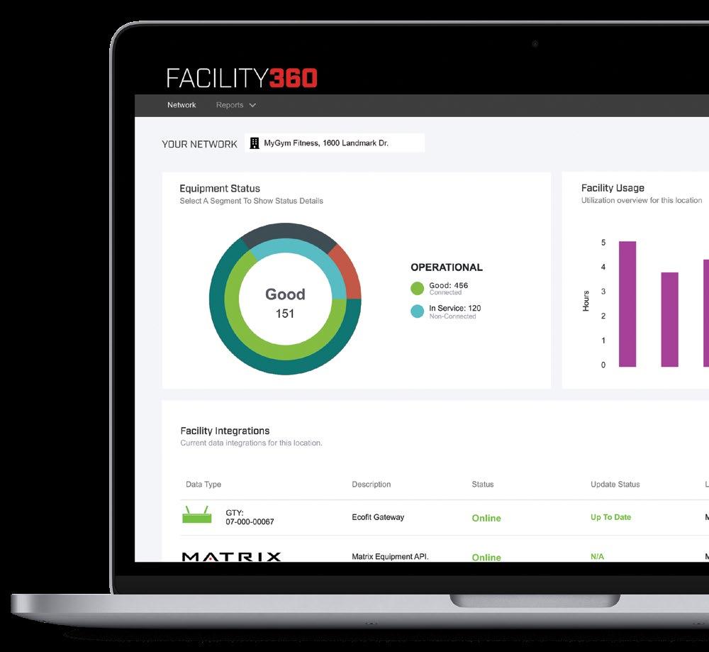 Whether you manage one fitness facility or many, Facility 360 Powered by Ecofit gives you the insightful analytics you need to make data-driven decisions and manage your equipment. Realtime updates, sophisticated reporting and comprehensive tracking make it easier than ever to streamline service, reduce downtime, maximize equipment life and keep your people happy. MATRIX CONNECTED SOLUTIONS
