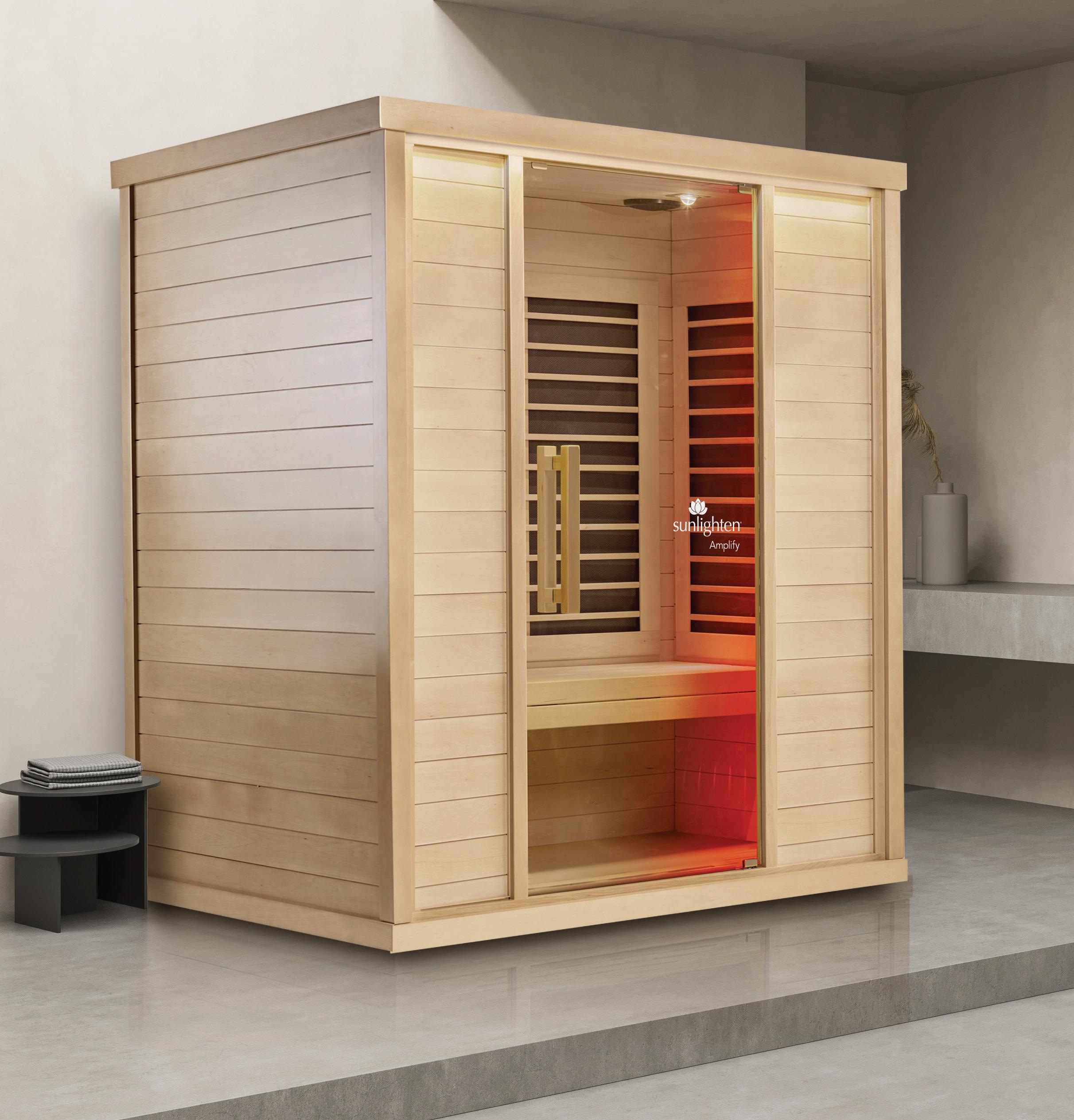 Take your sauna session to the next level. You’ll sweat deep, sweat fast and feel productive in an Amplify full spectrum sauna. Get the maximum physical benefits of Sunlighten’s proven most-effective full spectrum infrared therapy quicker and in a more intense, hotter heat amplified by halogen heaters at a reasonable price.