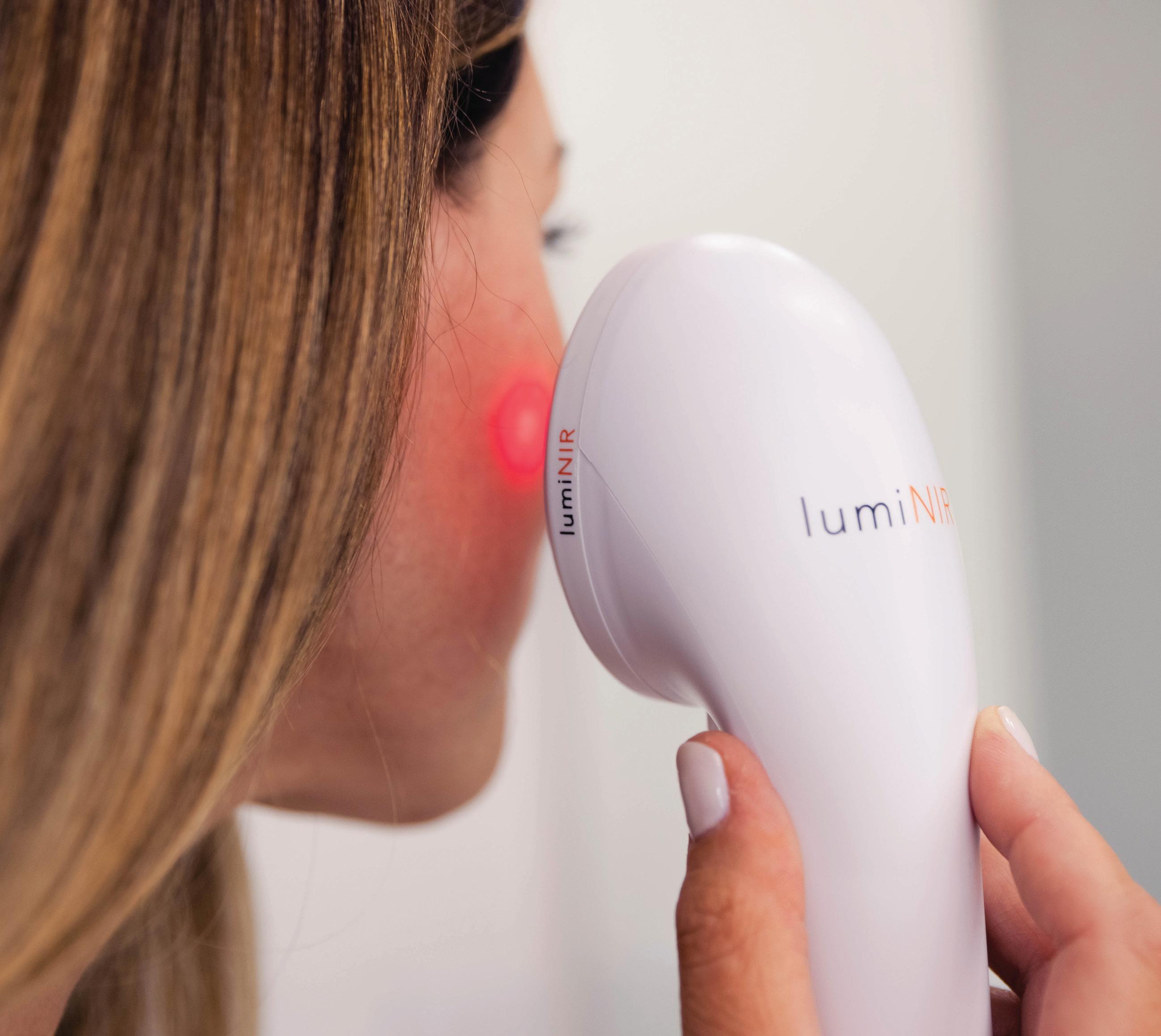 Take care of your skin with our LED light therapy device. Affectionately called the “lumi,” the wand has four LED attachments that deliver scientifically proven red light therapy, blue light therapy and near infrared therapy to regenerate cells for better-looking skin and muscle pain relief.