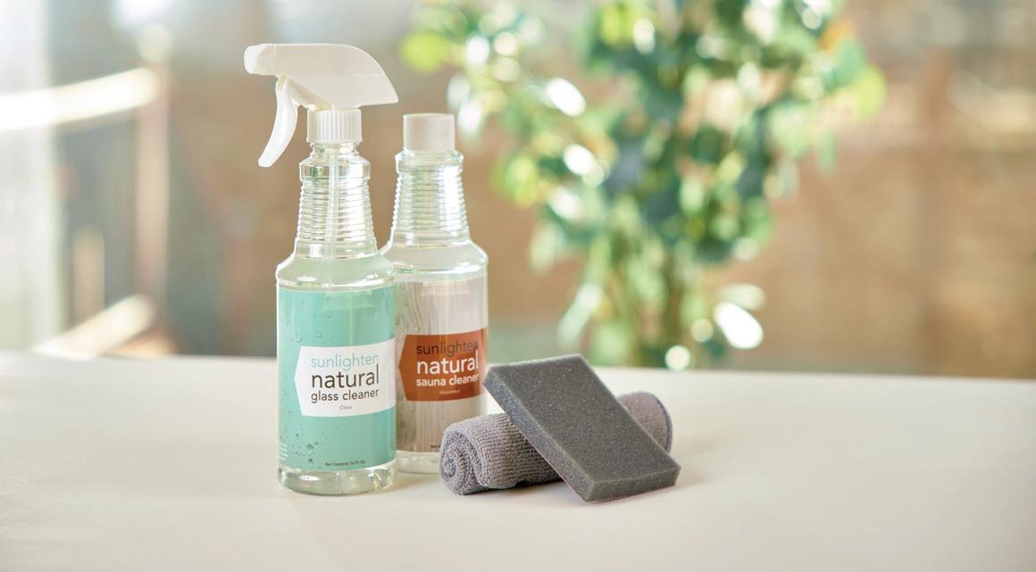 Clean your sauna worry-free with our all-natural, non-toxic cleaner kit, which includes a sauna cleaner, glass cleaner, sanding sponge, and microfiber cloth.