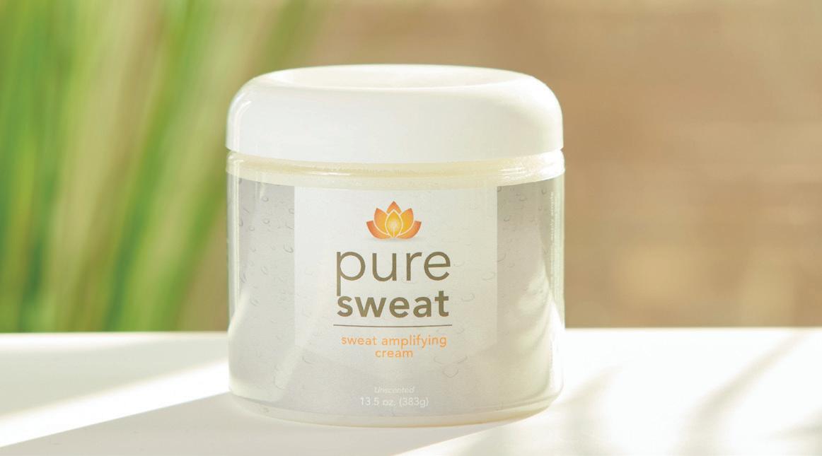 Maximize your sauna session or workout by using our specially-formulated sweat amplifying cream. Pure Sweat works with your body to give you faster results: multiplies sweating, increases circulation, enhances vasodilation, accelerates caloric burn, helps release toxins, fights muscle fatigue, and targets slow-to-respond areas. Sweat harder, sweat earlier.