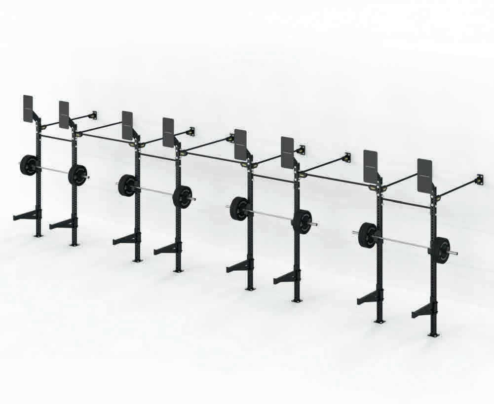 Freestanding - does not need any floor fixing. Fits 9 barbells.
