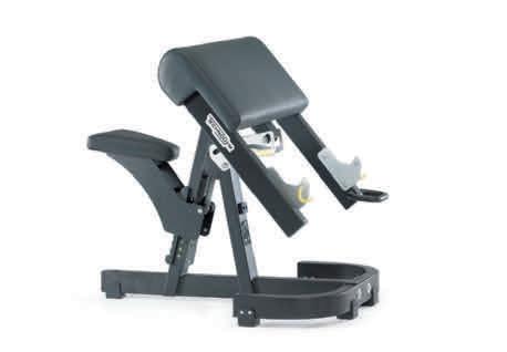 The curved ergonomic chest pad on the Pure Strength Biceps accommodates the thorax profile and improves posture during the arm curl exercise. Compared to the standard flat pad, the ergonomic pad decreases both shoulder protraction and thoracic kyphosis*.
