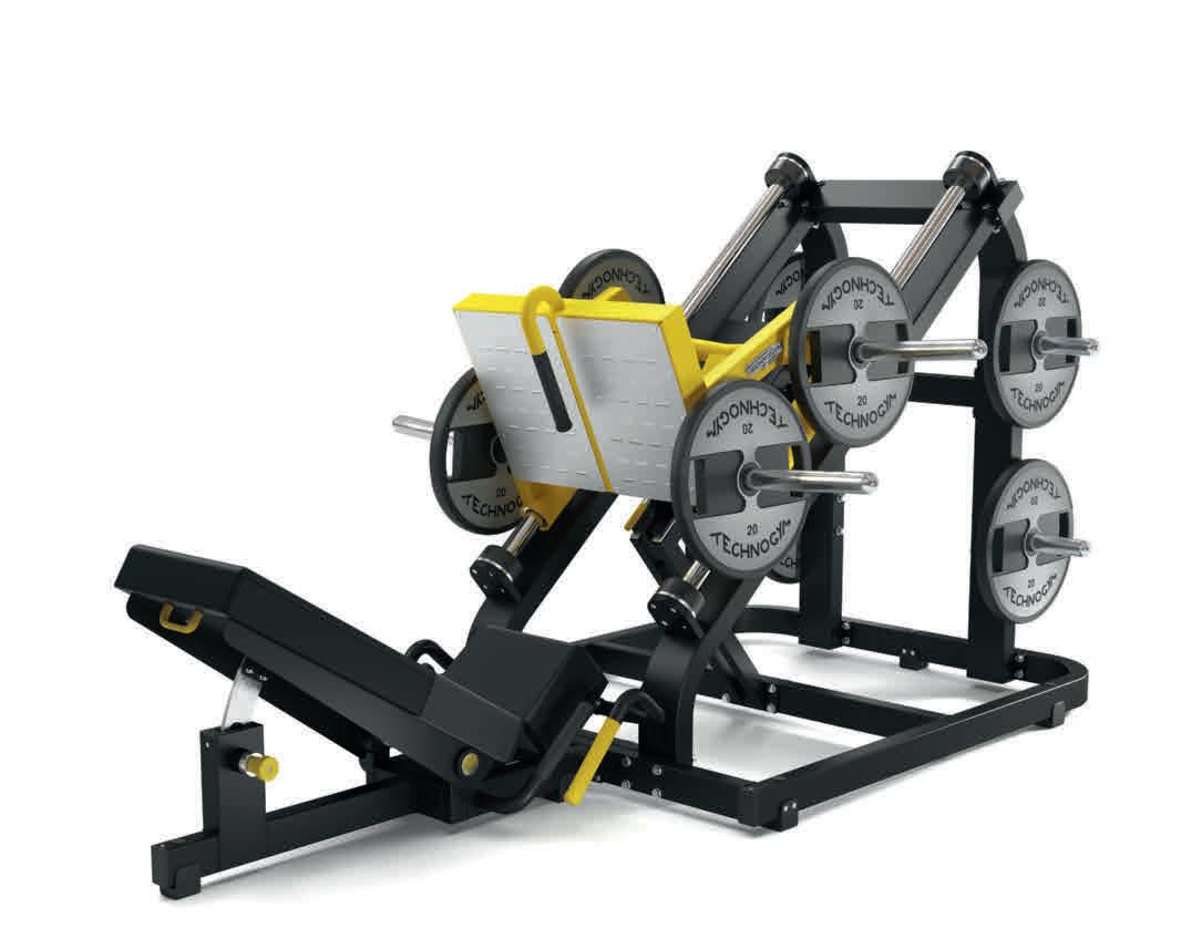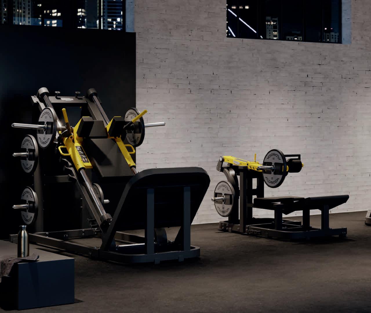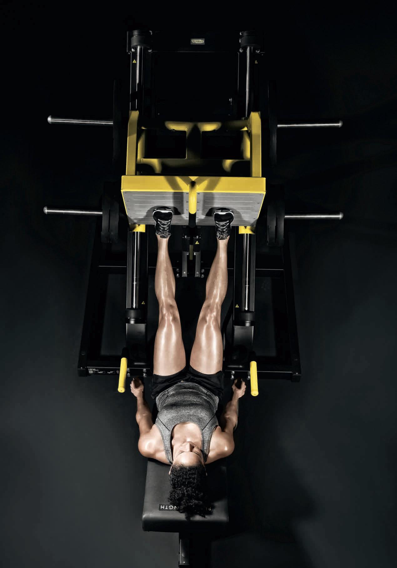 The rotary path of the weight plates provides an optimal resistance profile, increasing as legs move to full extension.