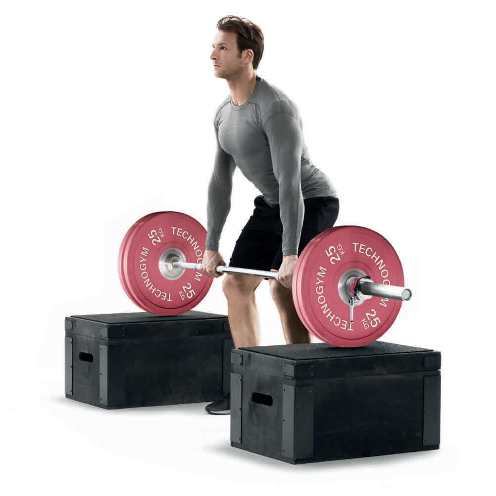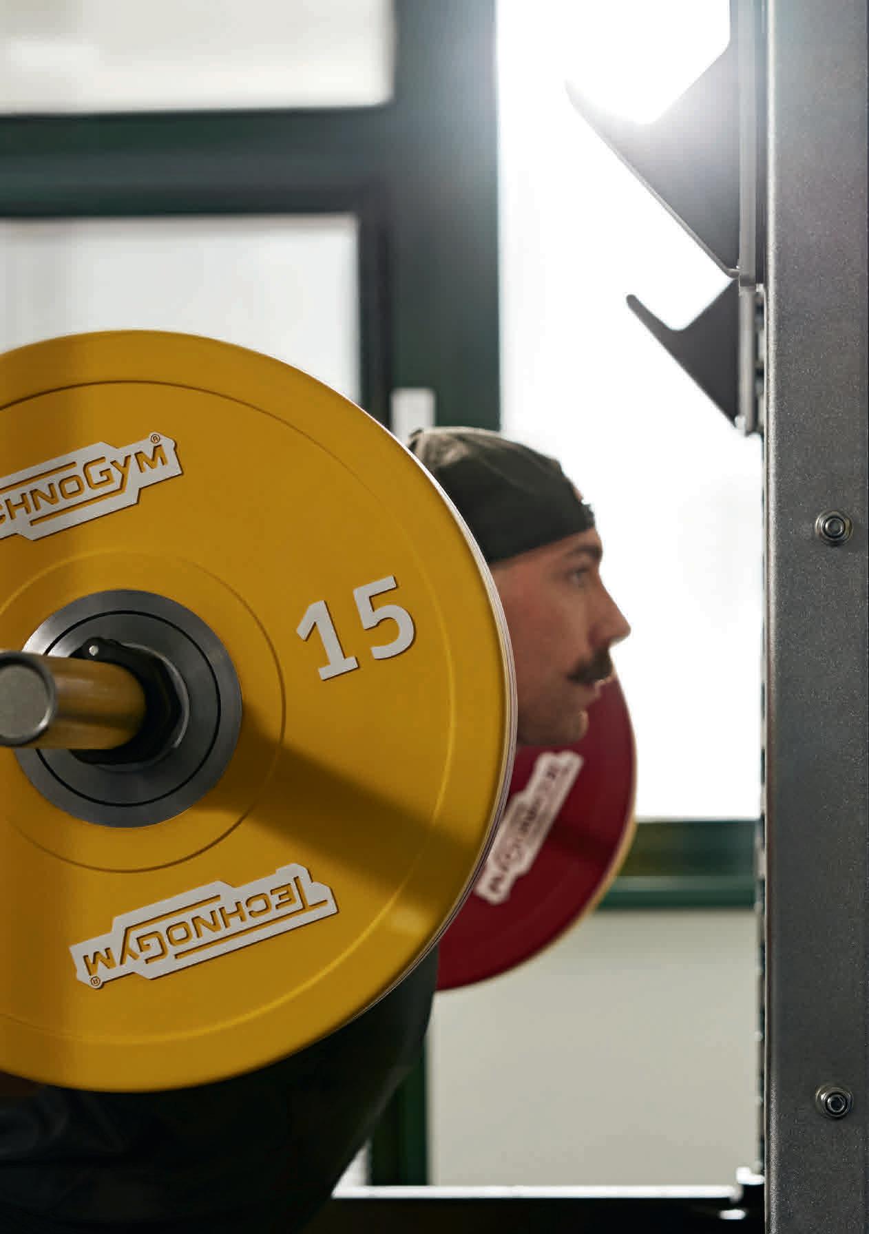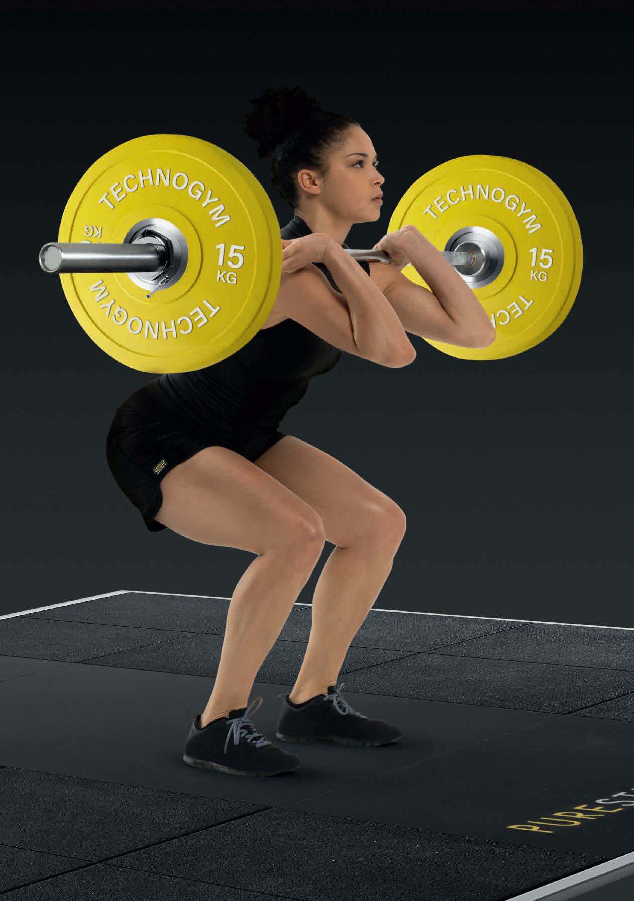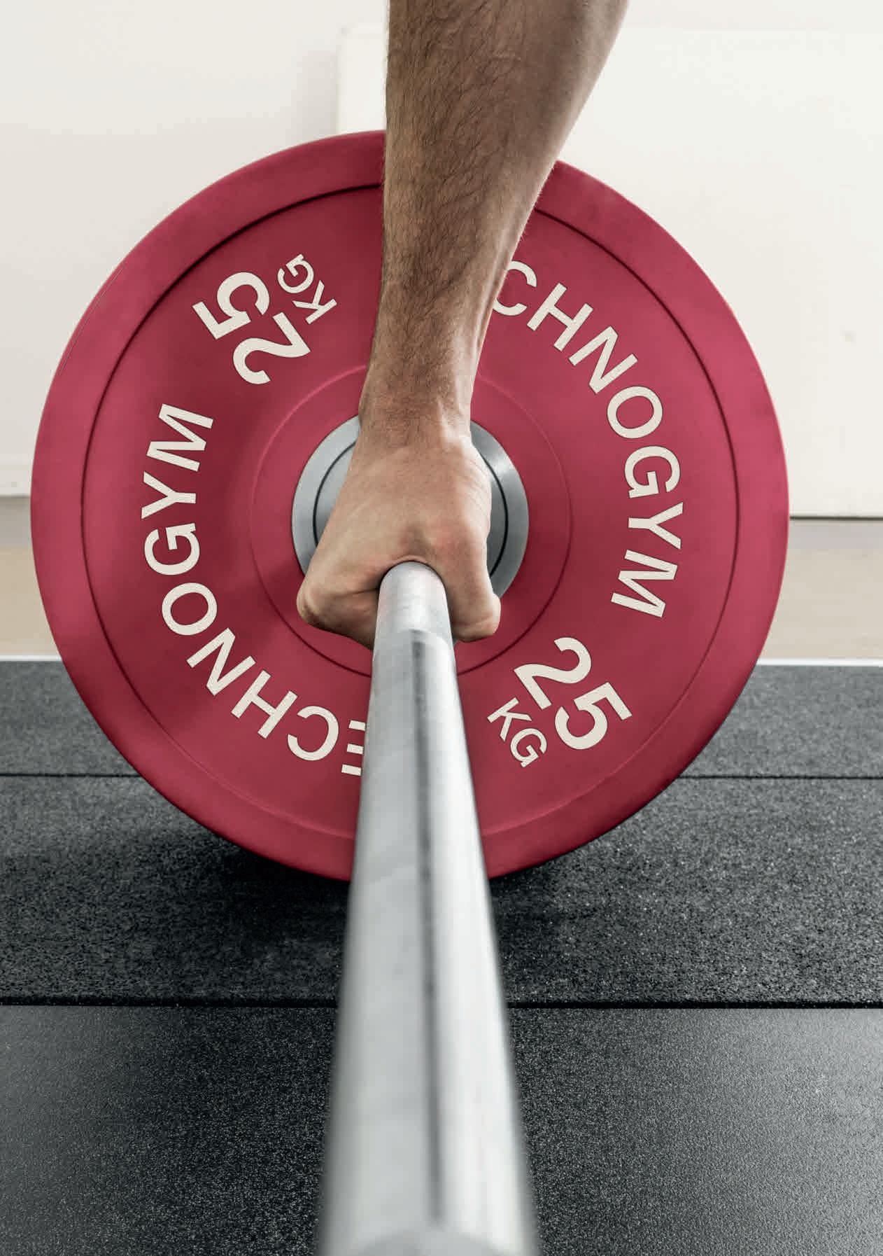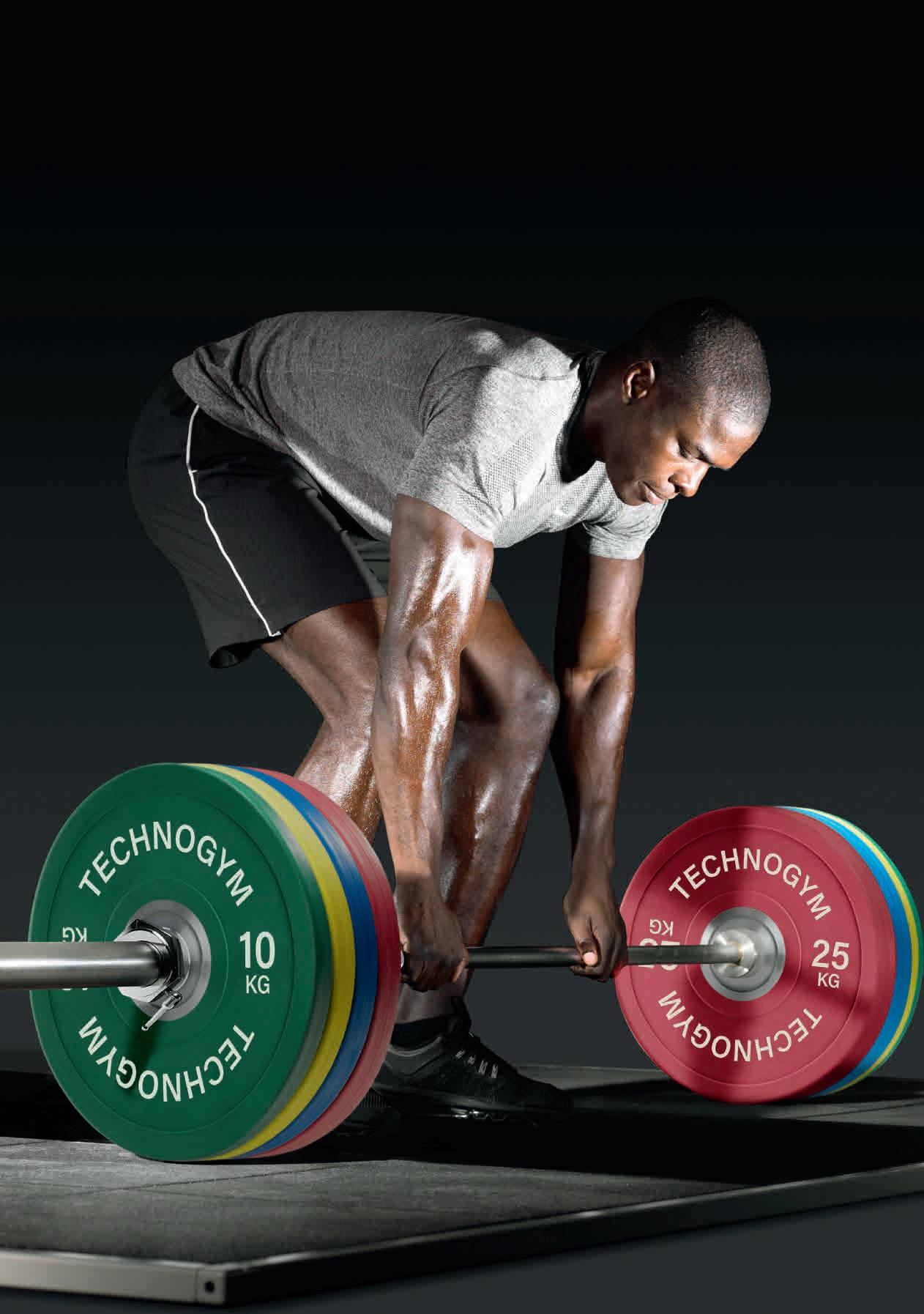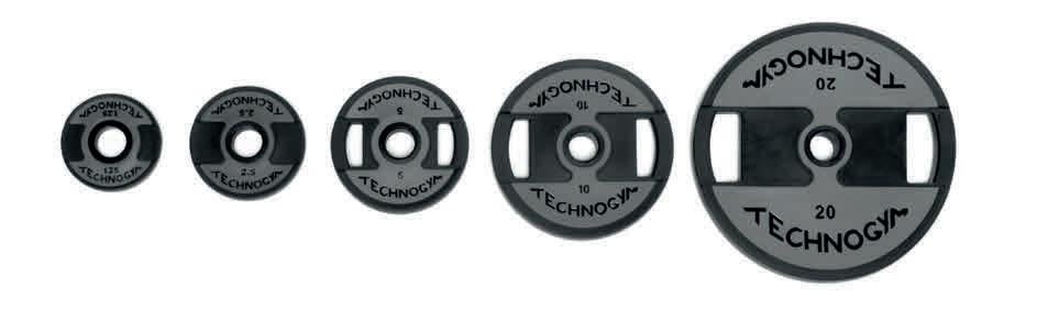 Technogym has expanded its range of free weights with a complete set of bumper plates for use during Olympic weightlifting exercises. The set follows the international Olympic color code for easy identification and selection, helping users enjoy more efficient workouts.