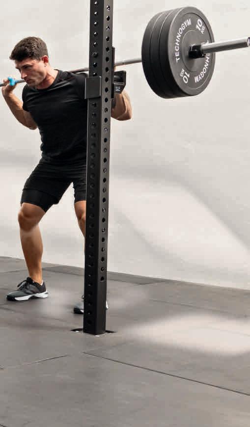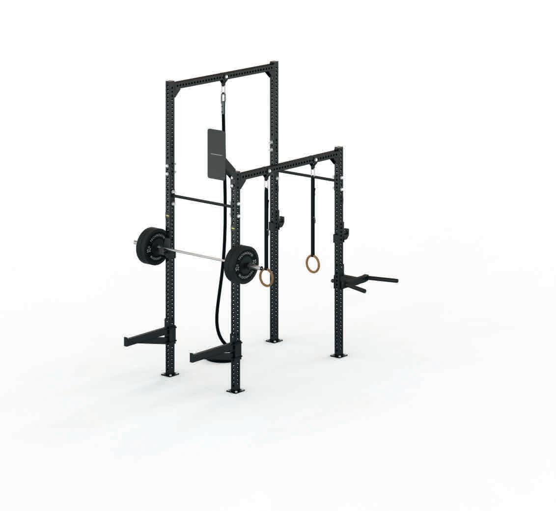 The extra-large foot platform and the footrest for single leg use enable users to perform multiple variations of squats and lunges, either double or single legged.