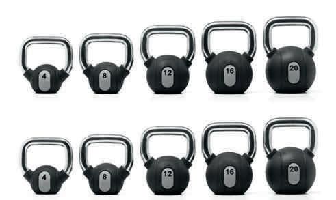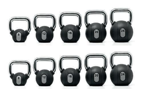The most premium and attractive kettlebell available features a dualcolored rubber finish and smooth stainless steel handle. All pieces feature a full, round shaped bell to reduce discomfort during contact with the forearm.