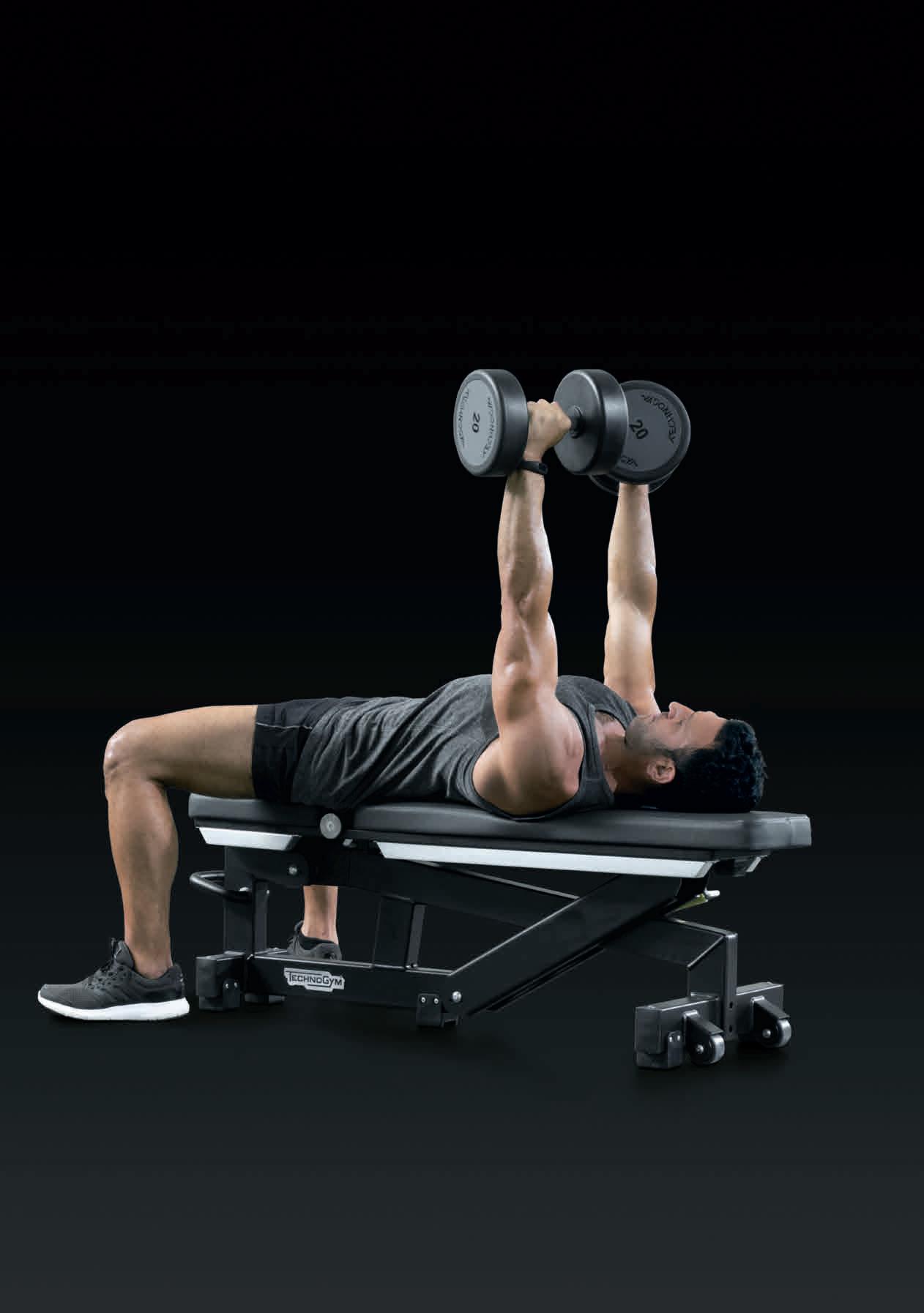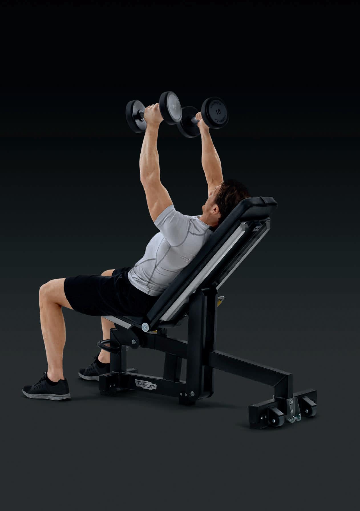 A solid 3 mm (0.12 in) frame ensures maximum stability during intense usage. The large backrest and the Bodyprint Technology ensure greater comfort and stability for every user. These benches are ideal for professionals centers.