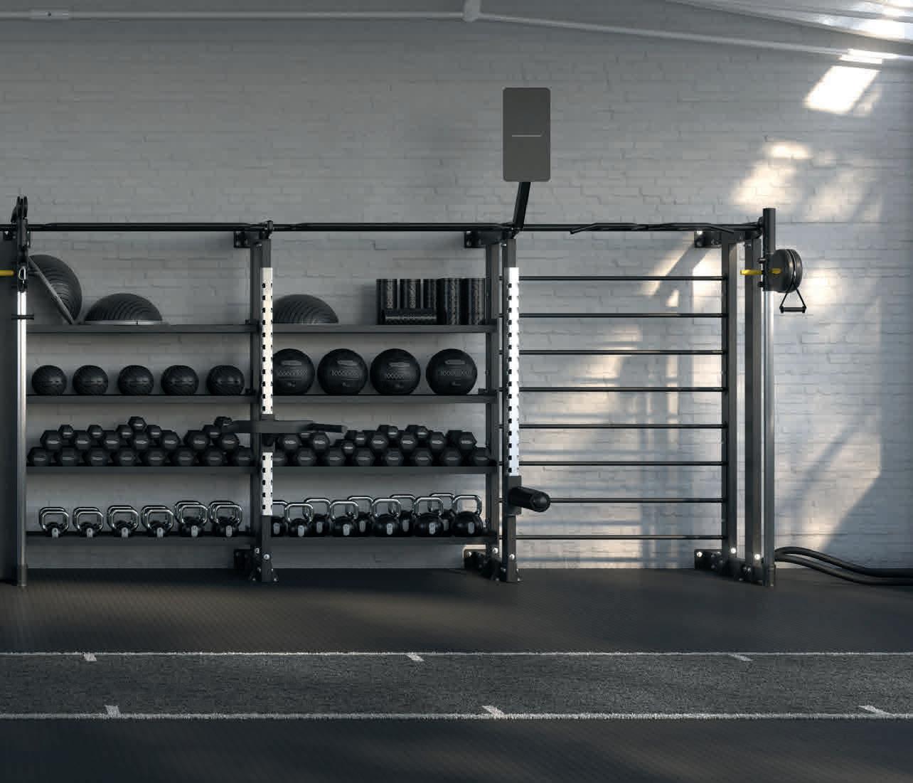 The Universal Storage Rack can be fitted with a Mywellness® Code. With the QR code technology, all exercises performed using the kettlebells can be tracked with Technogym App.