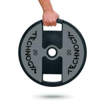 The plate is made of a cast iron center encased in a urethane shroud. It is designed to be used for bench and rack exercises and on plate-loaded equipment. The special two-handle design makes the plates easy and safe to pick up and carry, combining strong looks with versatility.