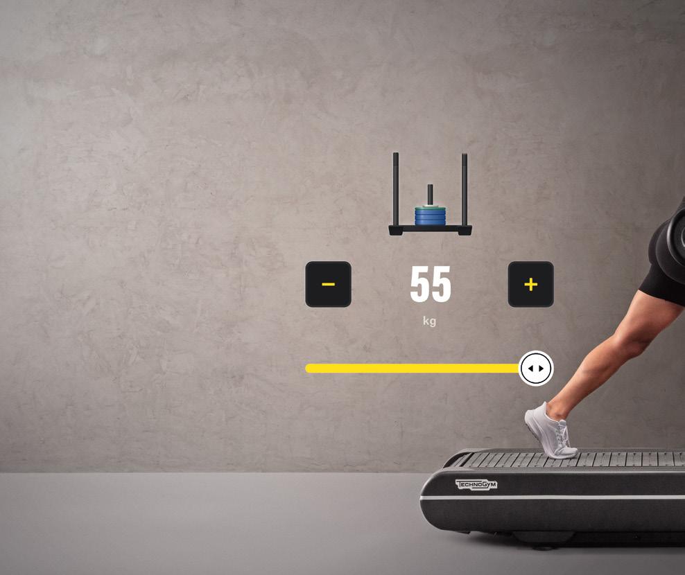 For the first time ever on a treadmill, work on all body areas involved in running – legs, abs and glutes. Using push mode, you can adjust the resistance to replicate a sled with a load of up to 55 kg, improving your muscle tone, efficiency and stability.