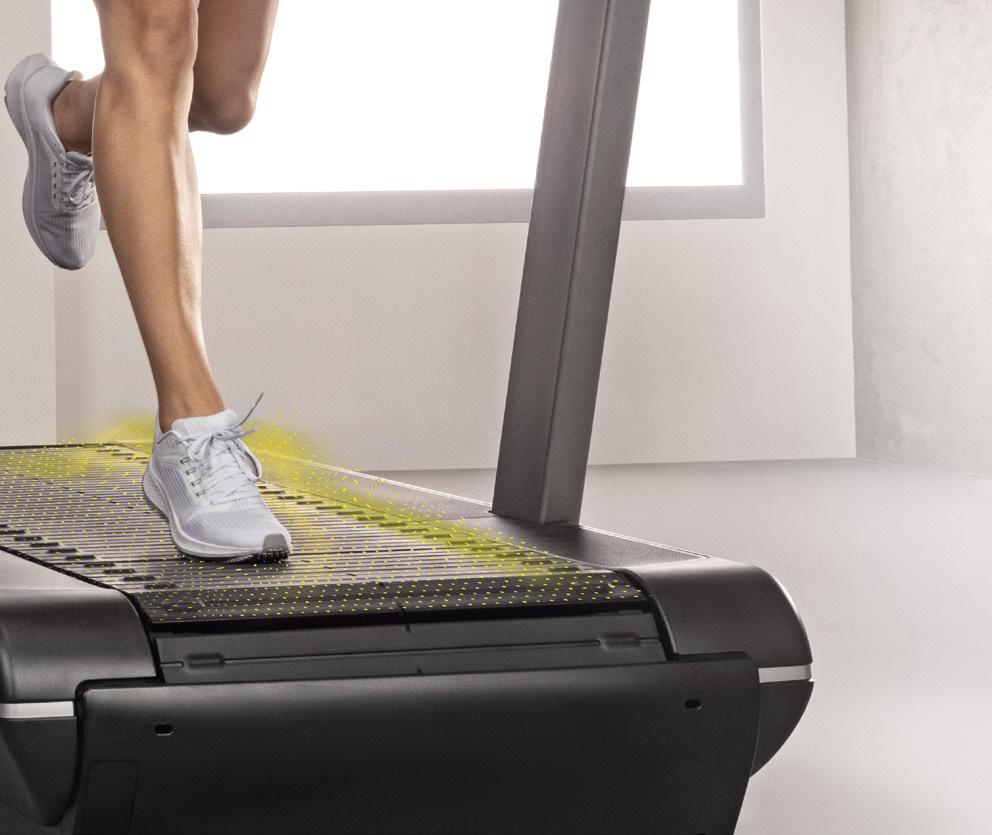 Feel lighter and faster on a reactive surface that responds to your stride. The Technogym Slat Belt absorbs shock and ensures low-impact landings, recreating the feeling of the best running surfaces.