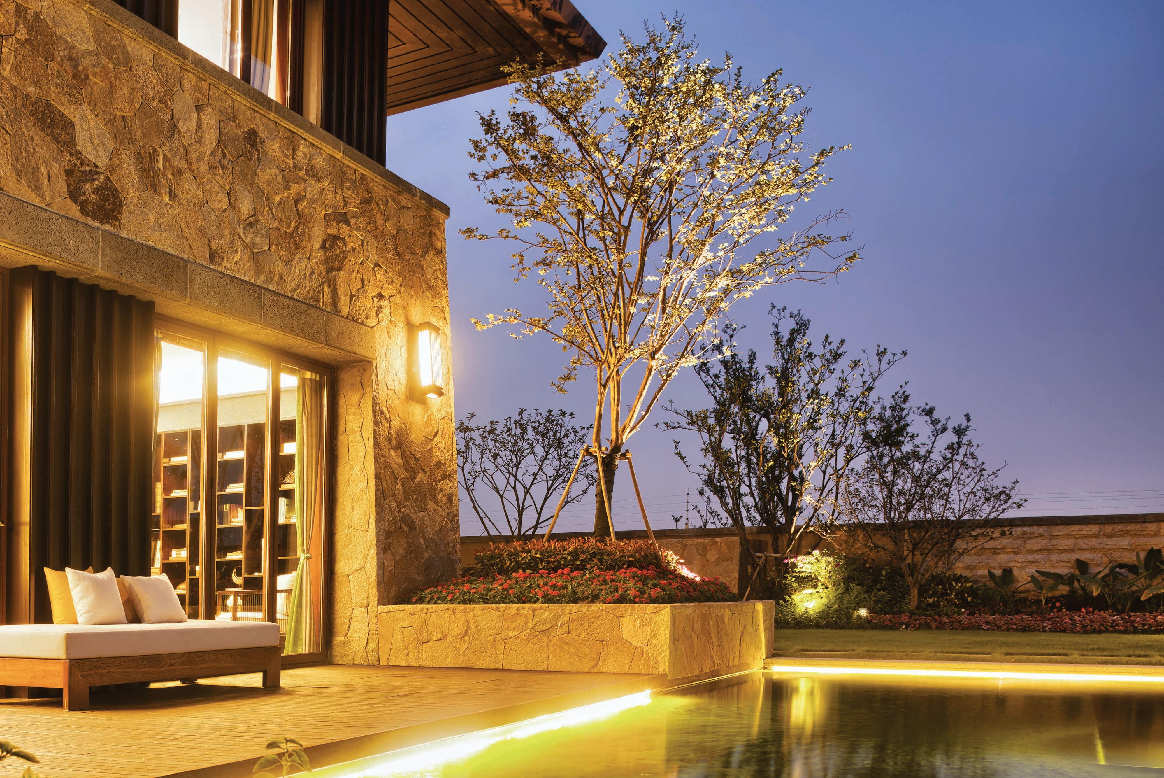 Enjoy an outdoor movie night and light up the outside of your home with energy-efficient landscape lighting.