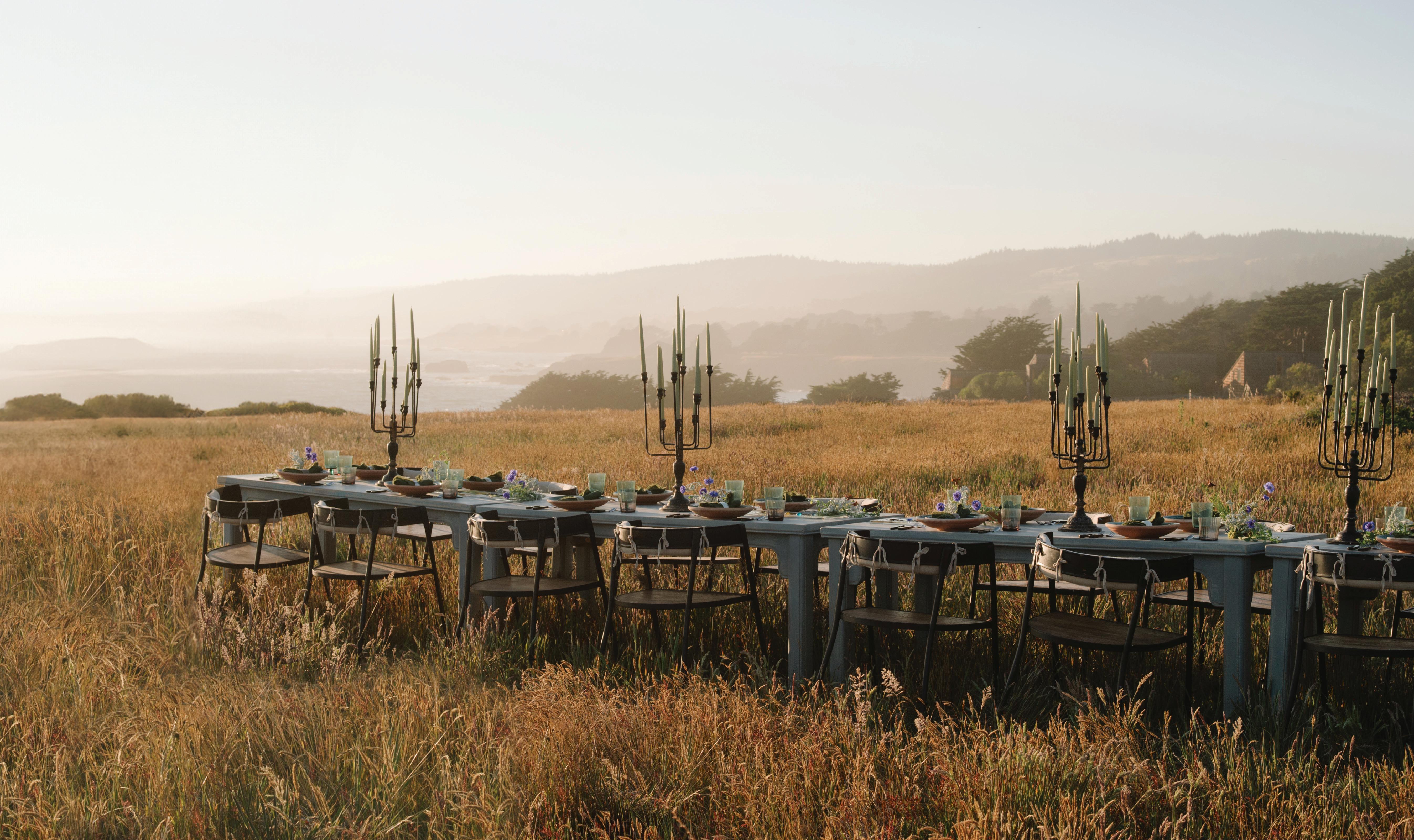 Big-city girl Kimmy Miura stole the heart of Montana boy Alex Lesowski during a game of mini golf, a story that inspired Amorology’s design for their wedding. “Playful greens and organic earthy touches alluded to Alex’s love of golf and their shared love of the great outdoors,” says owner Heather Baillet. “Reminiscent of their favorite lyrics from ‘Then’ by Brad Paisley, we created a space that reflected their ever-growing love and the greener pastures that lie ahead.” Kimmy and Alex exchanged vows overlooking the water while surrounded by a verdant arrangement of florals. As cocktail hour approached, guests were greeted with a wondrous sight: Over the cocktail space hung 1,000 paper cranes blowing in the breeze, a beautiful acknowledgement of Kimmy’s heritage. As a subtle nod to the couple’s defining date at the course, guests found their assigned table on calligraphed wooden links underneath a sign that read “Better Together.” The reception was thoughtfully curated with long dining tables adorned with lush florals in shades of cream, butter yellow and sage green; wood chargers; scallop-edged ceramic plates; and soft sage linen napkins with cream and gold flatware. Linen-covered chairs and rattan pendant lamps that hung overhead created a cozy and intimate space. In the final hours of the night, guests gathered to play glow golf on the resort’s golf course in honor of a love destined to be well above par for the course. —Calishia Vang