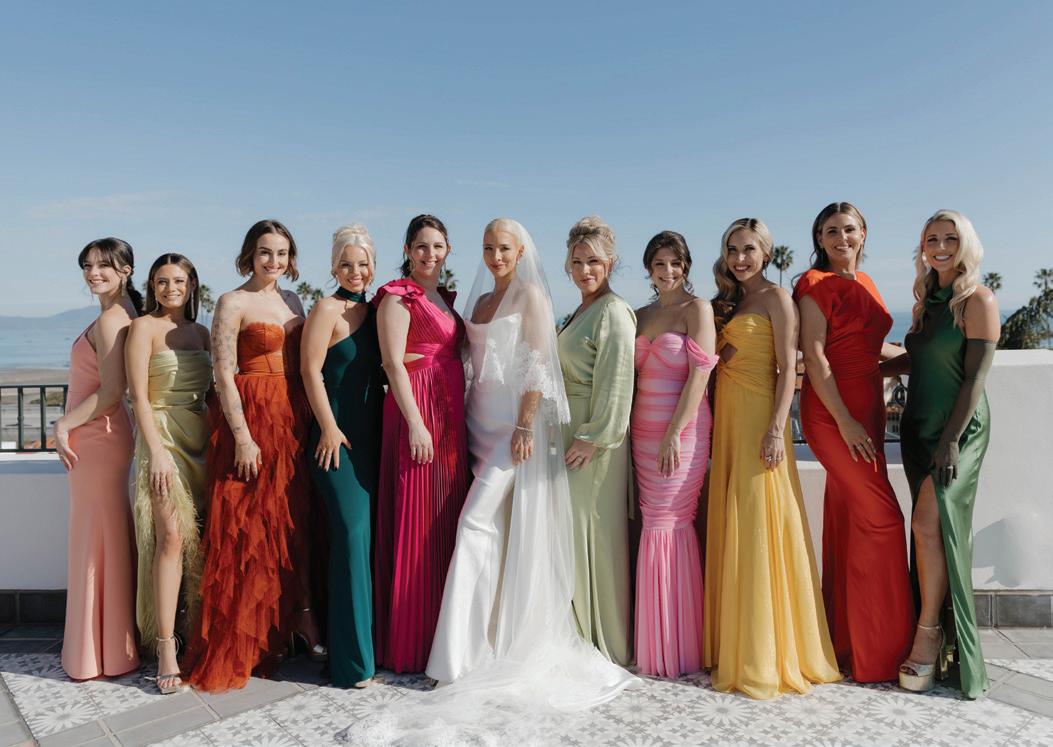 Bridal Attire: ALEX PERRY (@alexperryofficial) Bridesmaid Attire: SHOW ME YOUR MUMU (@showmeyourmumu); REFORMATION (@reformation)