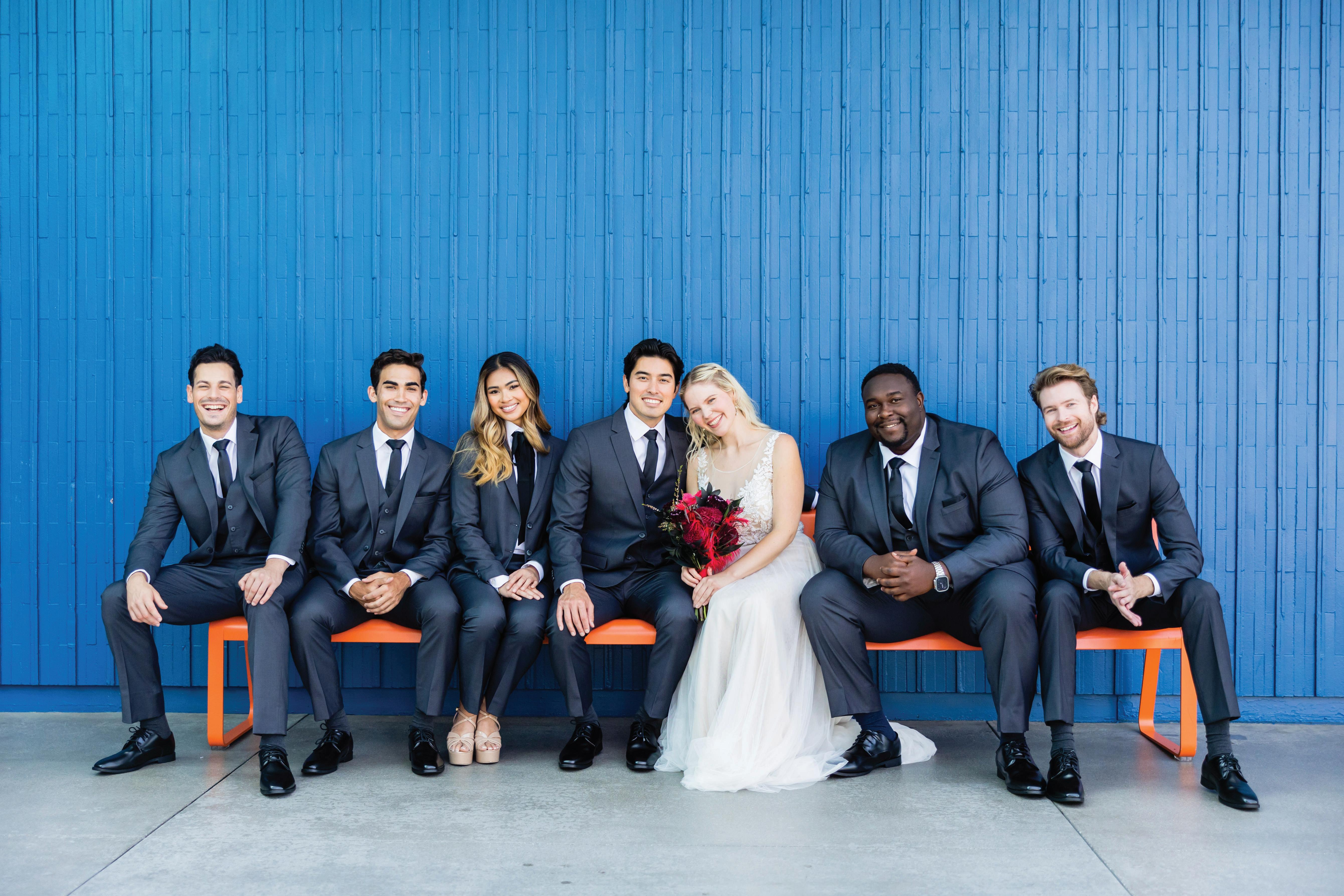 (@jennyyoonyc); FOR LOVE & LEMONS (second bridal look; @forloveandlemons) Bridesmaid Attire: BIRDY GREY (@birdygrey) Cake & Desserts: FROGGY BAKESHOP (@froggy_bakeshop) Catering: JAY’S CATERING COMPANY (@jayscatering) DJ: VALENTINE ENTERTAINMENT (@valentine_entertainment) Florals: PORTAL FLORAL STUDIO (@portal.floral.la) Groom & Groomsmen Attire: THE BLACK TUX (@theblacktux)