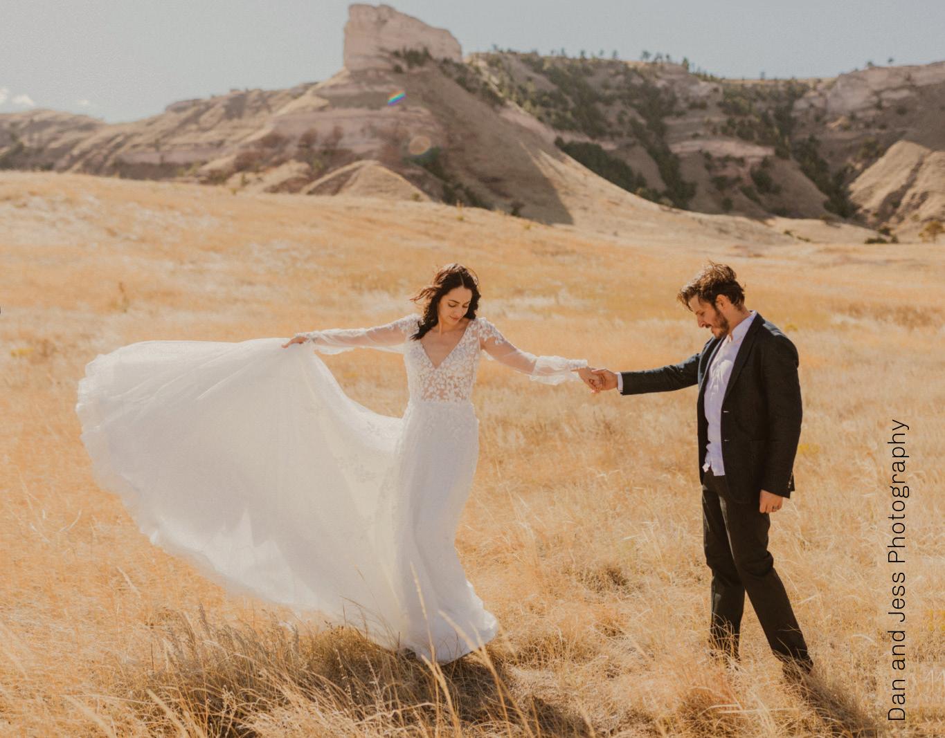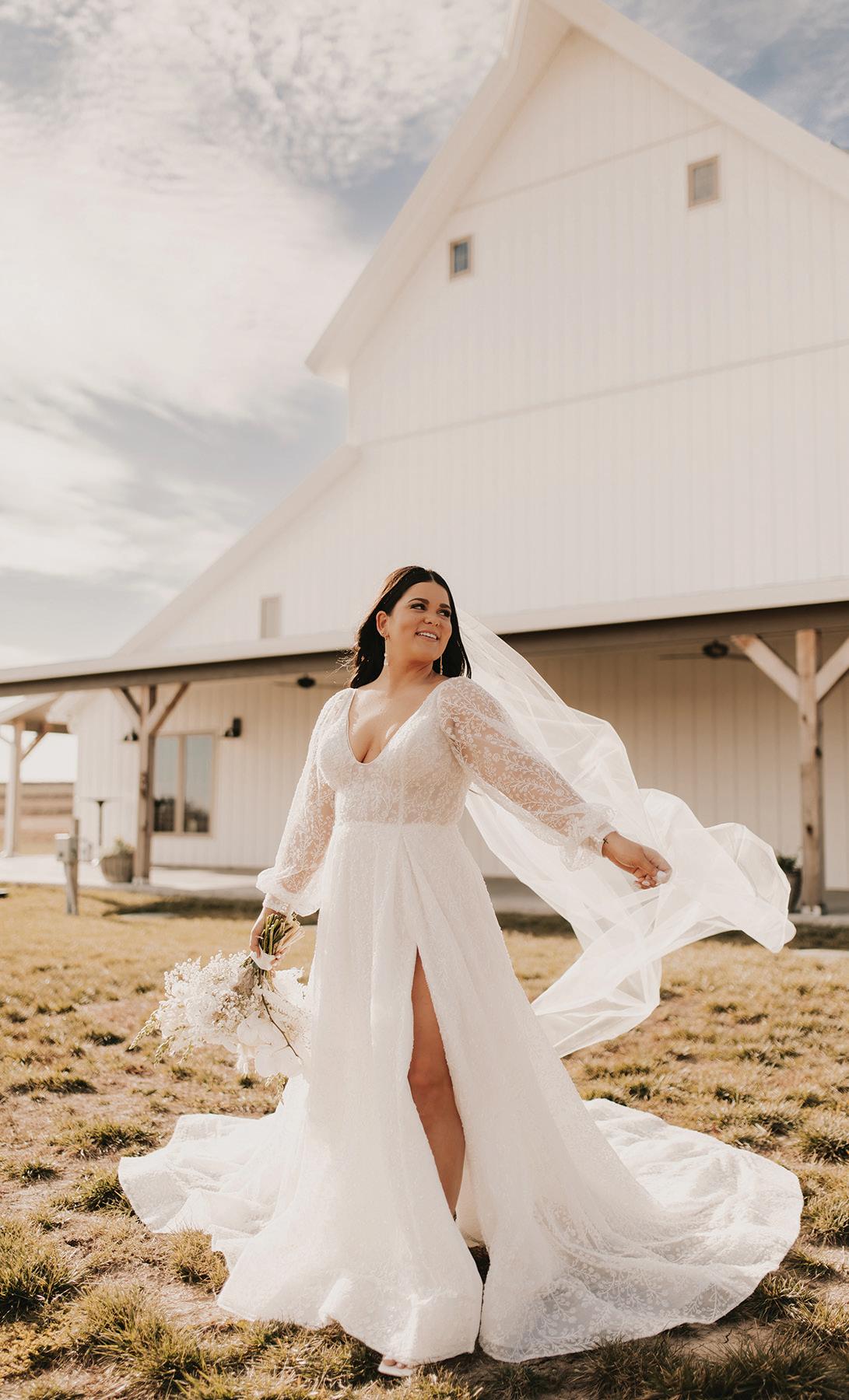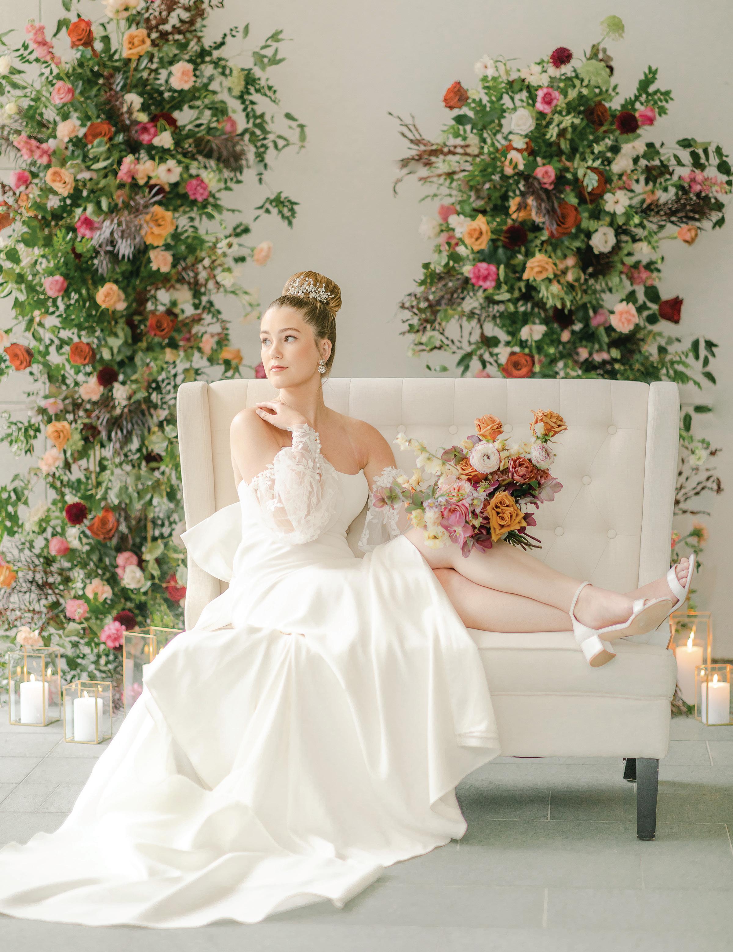 Meg Slattery Photography captured this moment of bride Zaidee Rada in a powerful moment of pure bliss. Rada says she had never felt more confident, with her sparkling beaded gown, glowing makeup and a bouquet that complemented every aspect of the day. Add a gentle breeze toying with her veil and the cotton candy clouds in the blue sky above, and the resulting image is truly magical – and was a close contender for our cover contest!