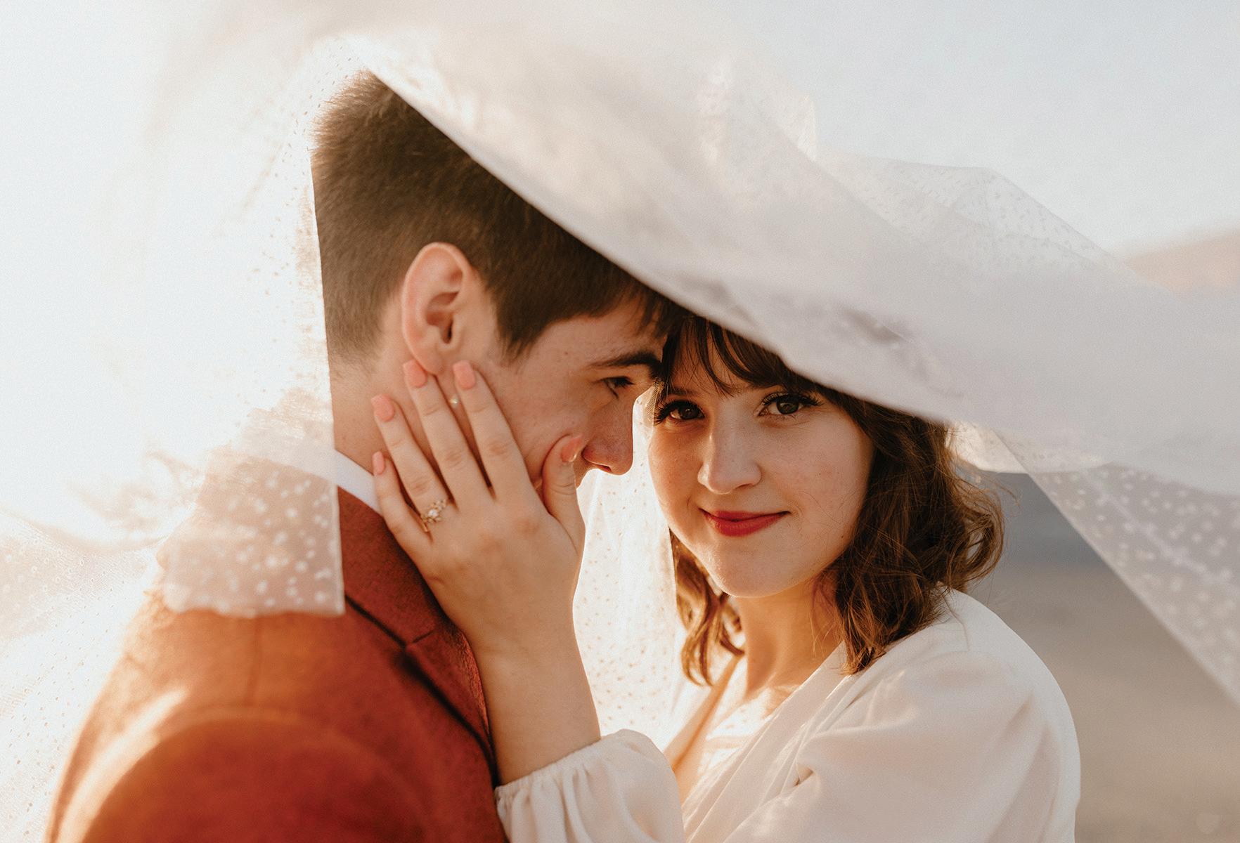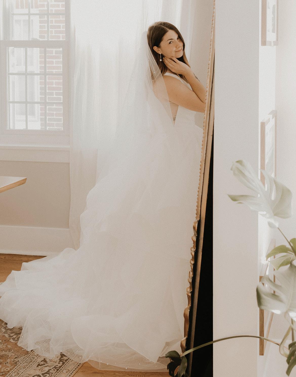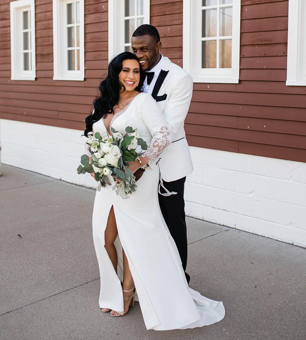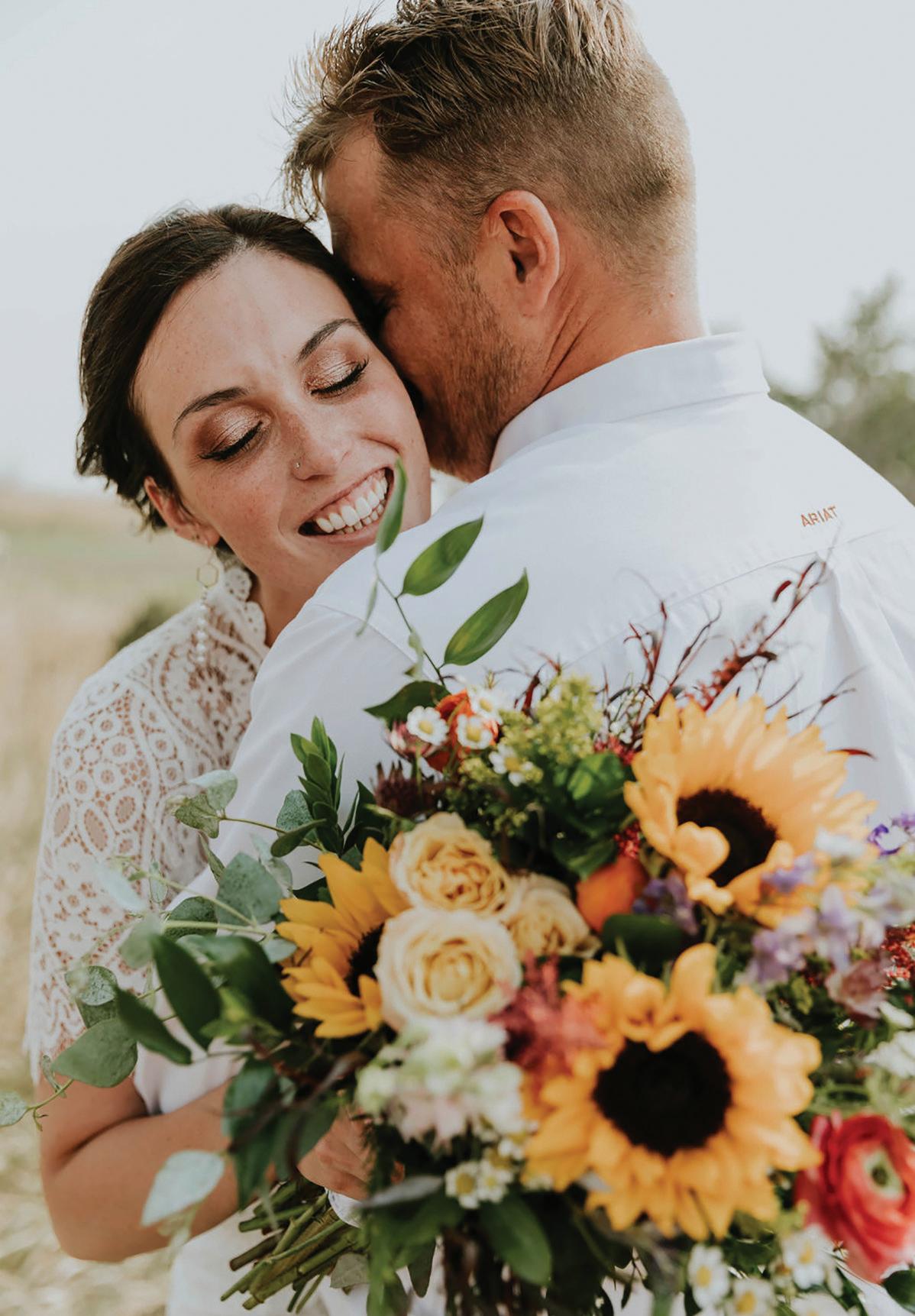 Meg Slattery Photography captured this moment of bride Zaidee Rada in a powerful moment of pure bliss. Rada says she had never felt more confident, with her sparkling beaded gown, glowing makeup and a bouquet that complemented every aspect of the day. Add a gentle breeze toying with her veil and the cotton candy clouds in the blue sky above, and the resulting image is truly magical – and was a close contender for our cover contest!