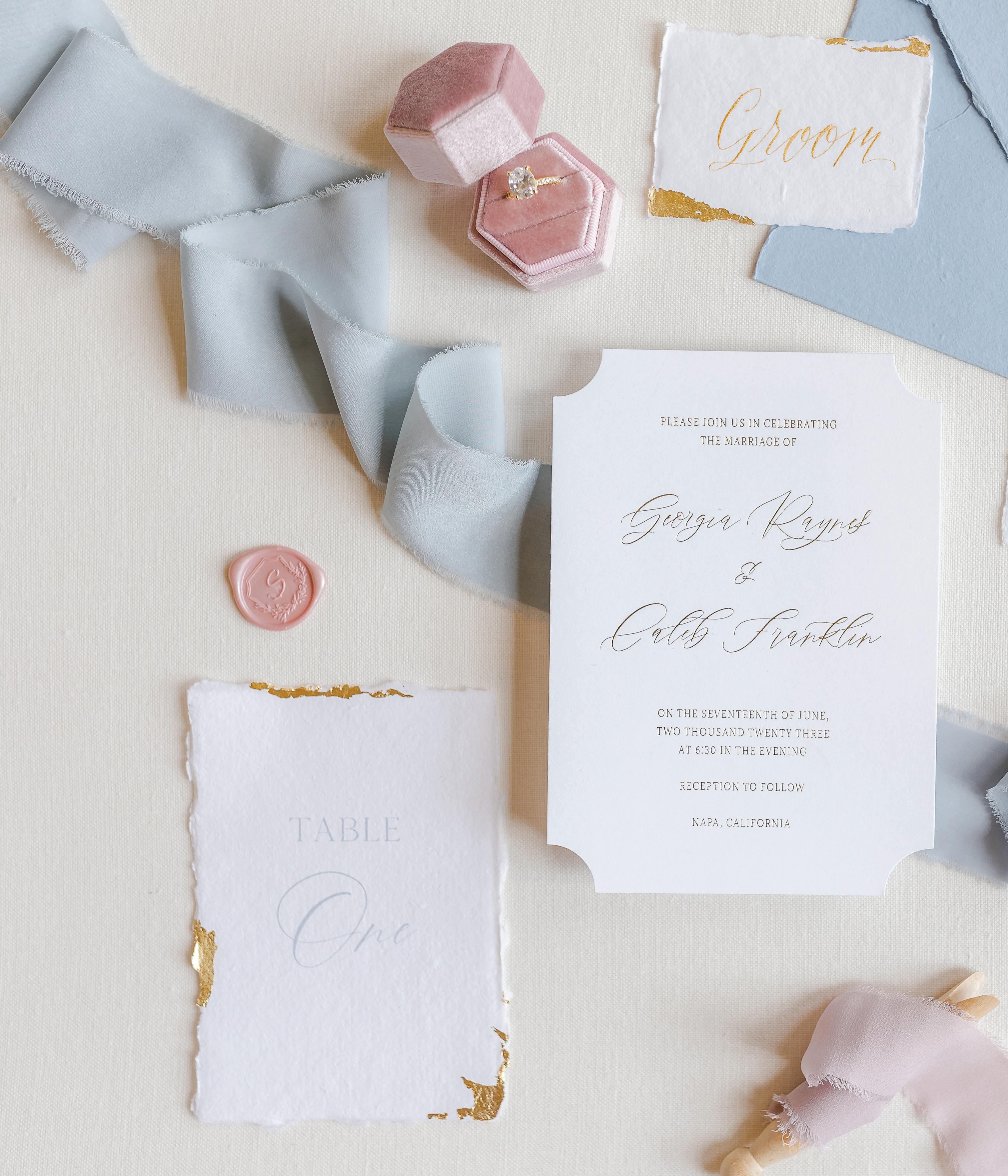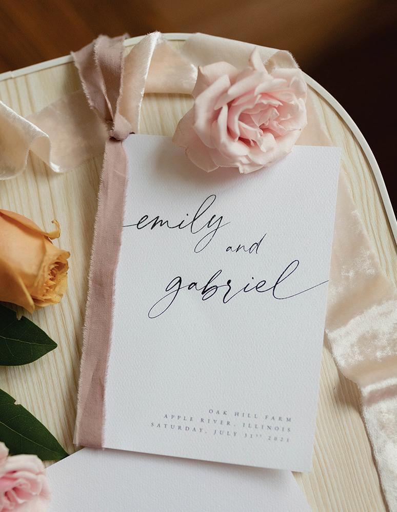 Created for a garden-inspired wedding, these chic wedding programs by Nicole Reher Creative are a study in timeless elegance. The graceful sweeping script, textured watercolor paper, and frayed blush ribbon provide a romantic touch to a vintage event. @nicole.reher.creative, @lisakathanbrand