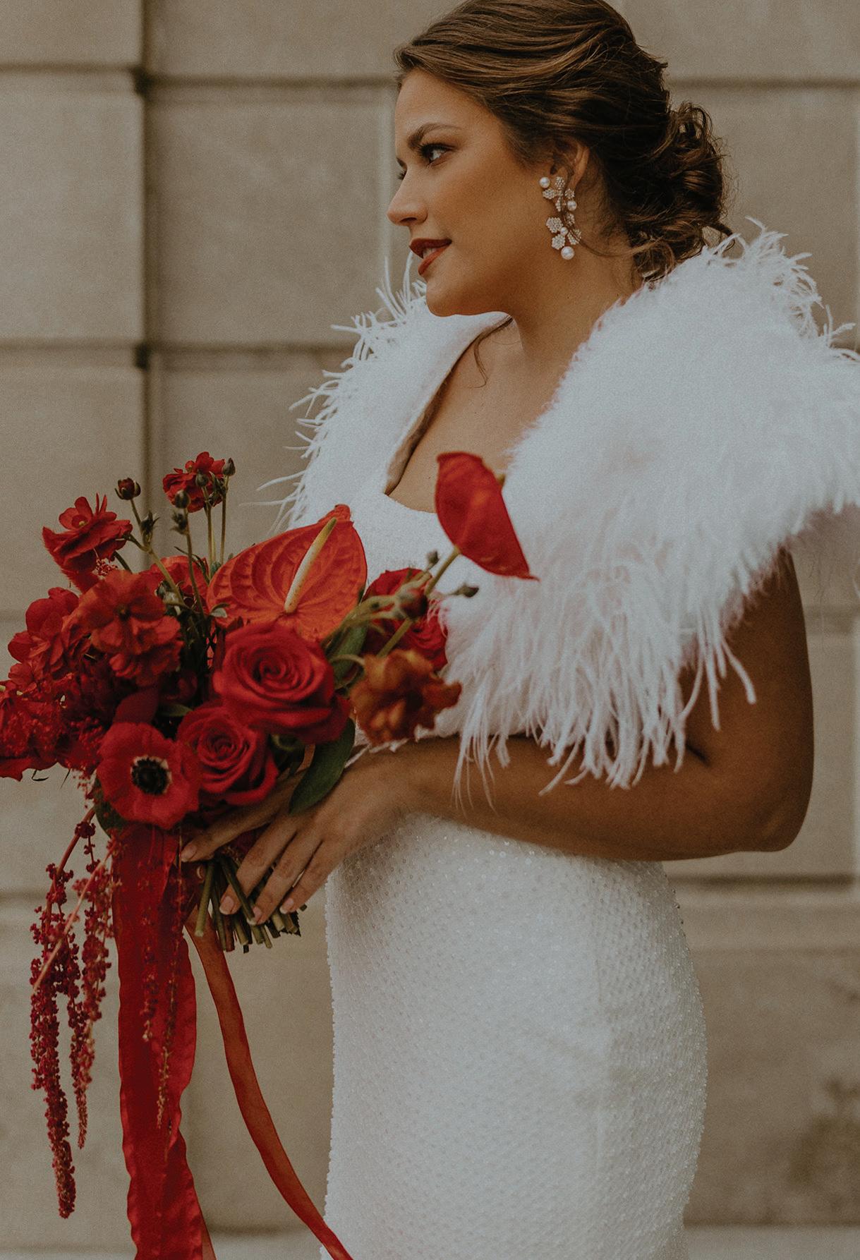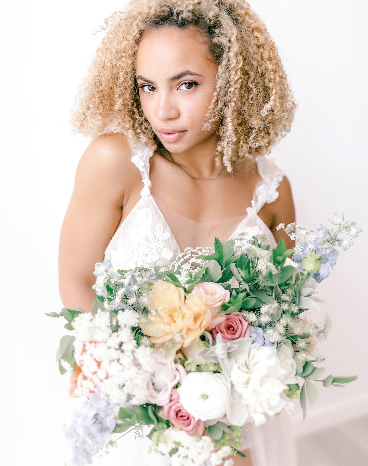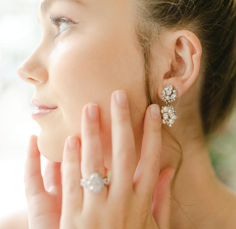 Wearable florals are a whimsical way to show off your unique style, and these hoop earrings are an incredible new take on floral design. Natalie Elsberry, designer at Of the Earth florals says “We adore floral jewelry of all kinds!” For this particular design, Elsberry threaded hyacinth blossoms onto large hoop earrings for this modern and delicate look. @oftheearthflorals, @hayleydolson
