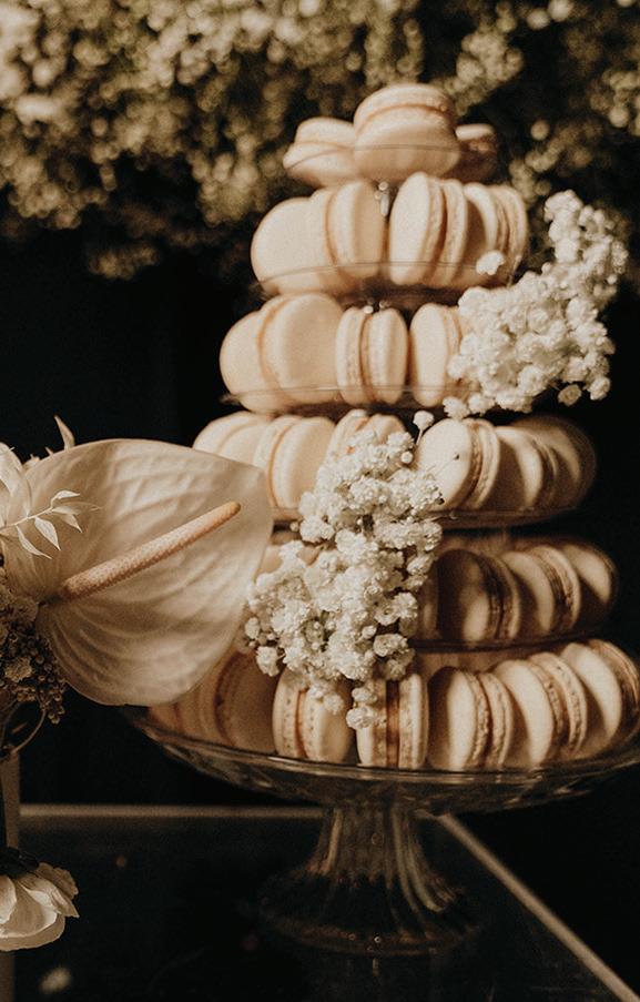 Thinking outside the cake box, Catherine Tran of Whisk + Lavender created this delicately stacked six-tier macaron tower for the modern bride who seeks something a little different. Her handcrafted caramel macarons make a superb treat, elegant and tasty delights that your guests can grab and go, so they won’t miss a moment of the party.