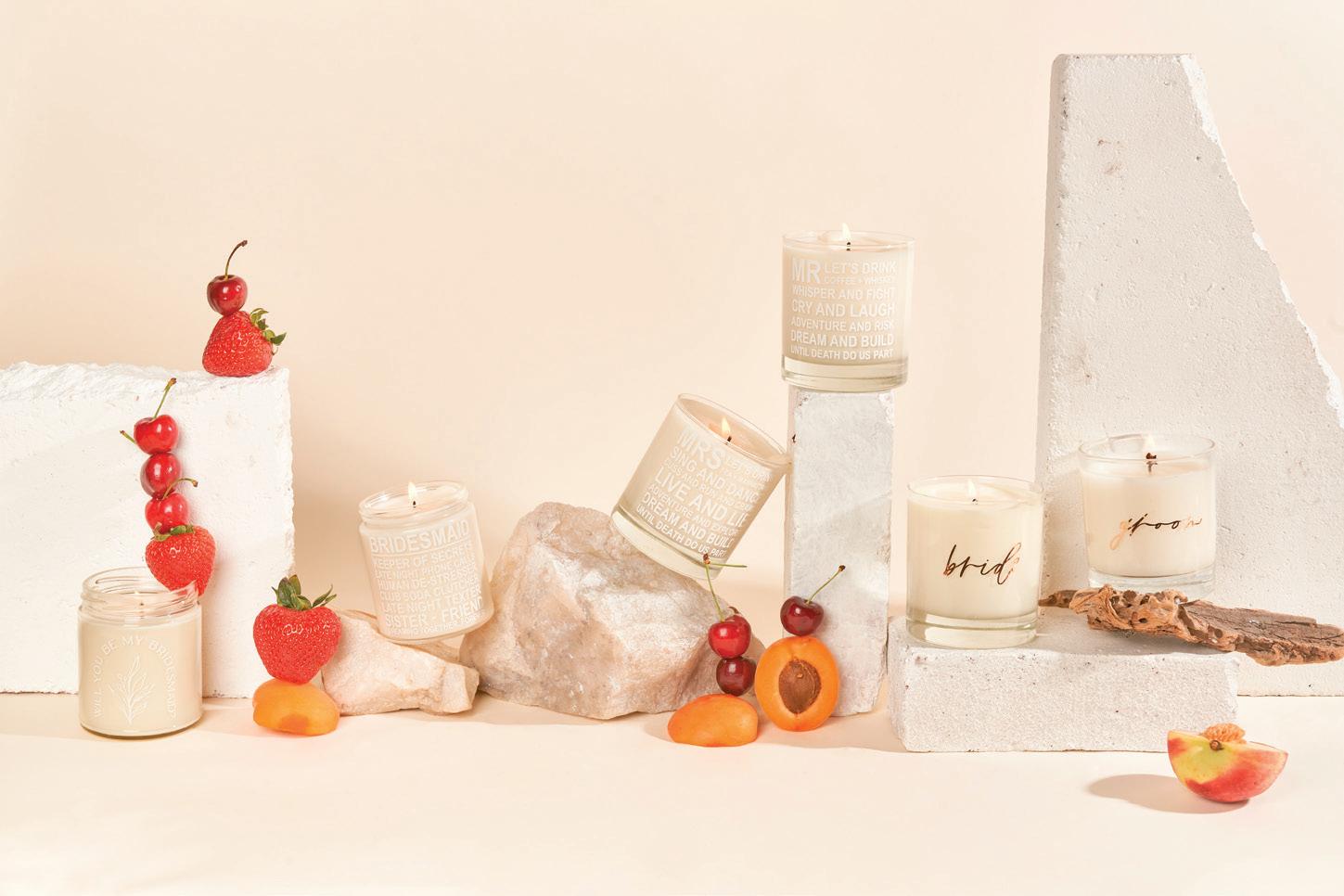 PHOTOS COURTESY OF: (CLOCKWISE FROM UPPER LEFT) TIBURON GOLF CLUB, PHOTO BY COMPLETE WEDDINGS + EVENTS. LAURA ELIZABETH PHOTOGR APHY. WAX BUFFALO CANDLES. GENTLEMAN’S CHOICE FORMALWEAR, PHOTO BY M. JULIE PHOTO. GARBO’S SALON AND SPA, PHOTO BY LAURA ELIZABETH PHOTOGRAPHY. RACHEL J. EVENTS, PHOTO BY YONI GILL PHOTOGRAPHY.