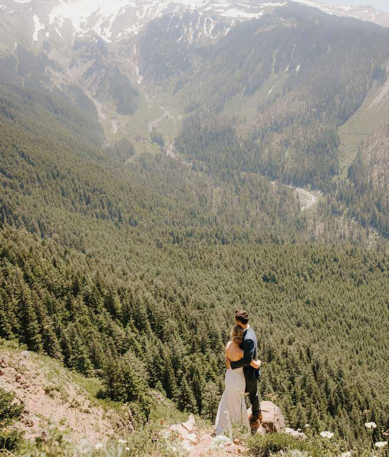 (On cover 2) Megan and Andrew had a private ceremony atop Mount Hood and then returned to the Woodlands House to celebrate with a small group of friends and family in the forest. See more of their wedding online.